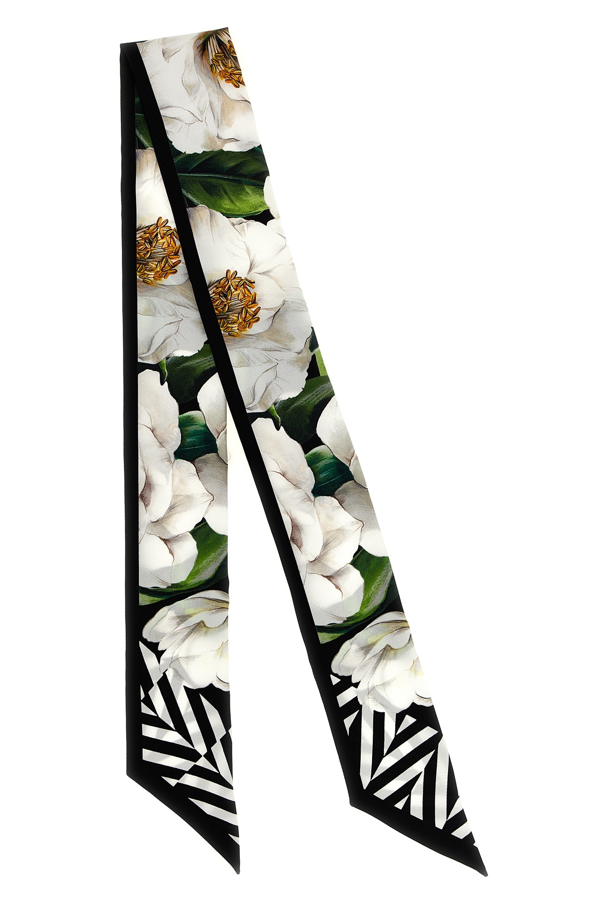 Jacquard logo silk twill scarf with floral print. The differences in print placement you might find on this product is a characteristic of Dolce&Gabbana's Handmade products. A peculiarity that makes each garment or accessory unique and exclusive.