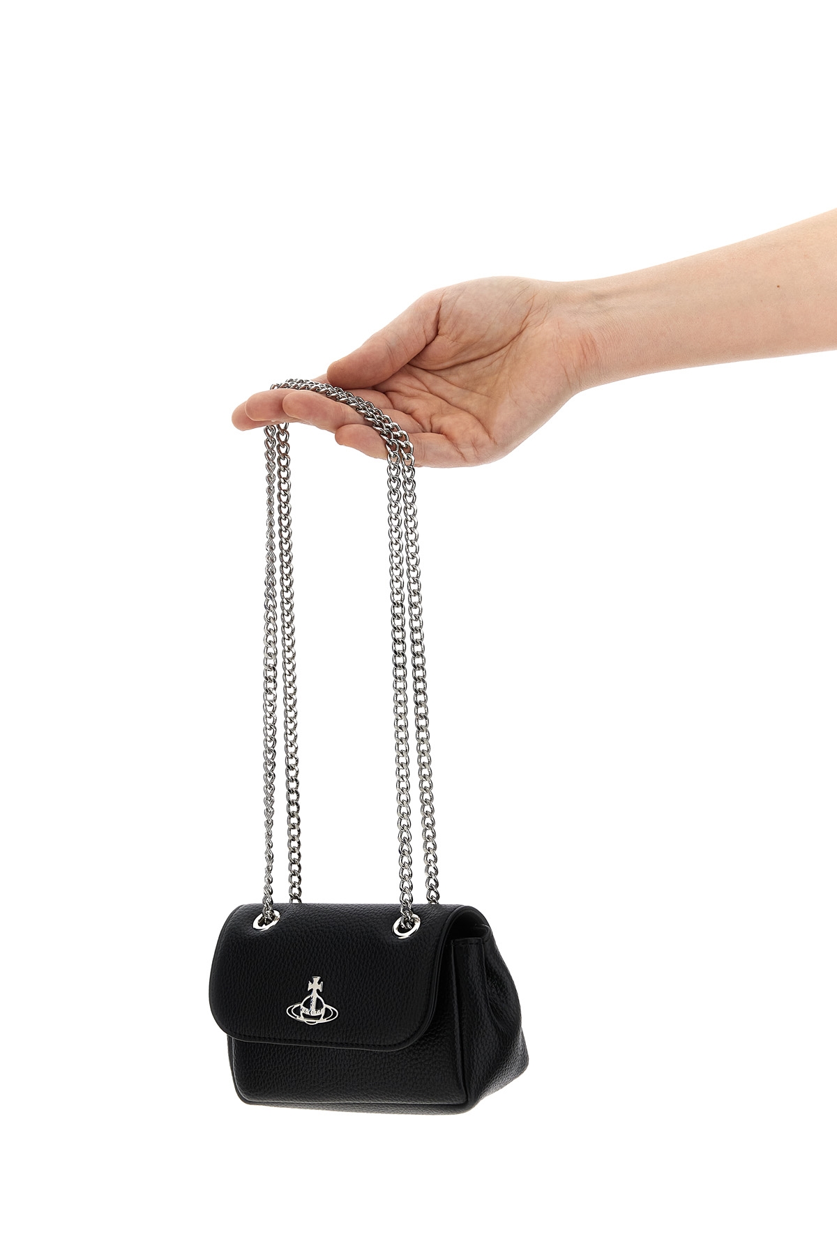 'Small Purse Chain' shoulder bag in garnet leather-effect fabric, magnetic flap closure with metal Orb logo on the front, sliding chain shoulder strap.