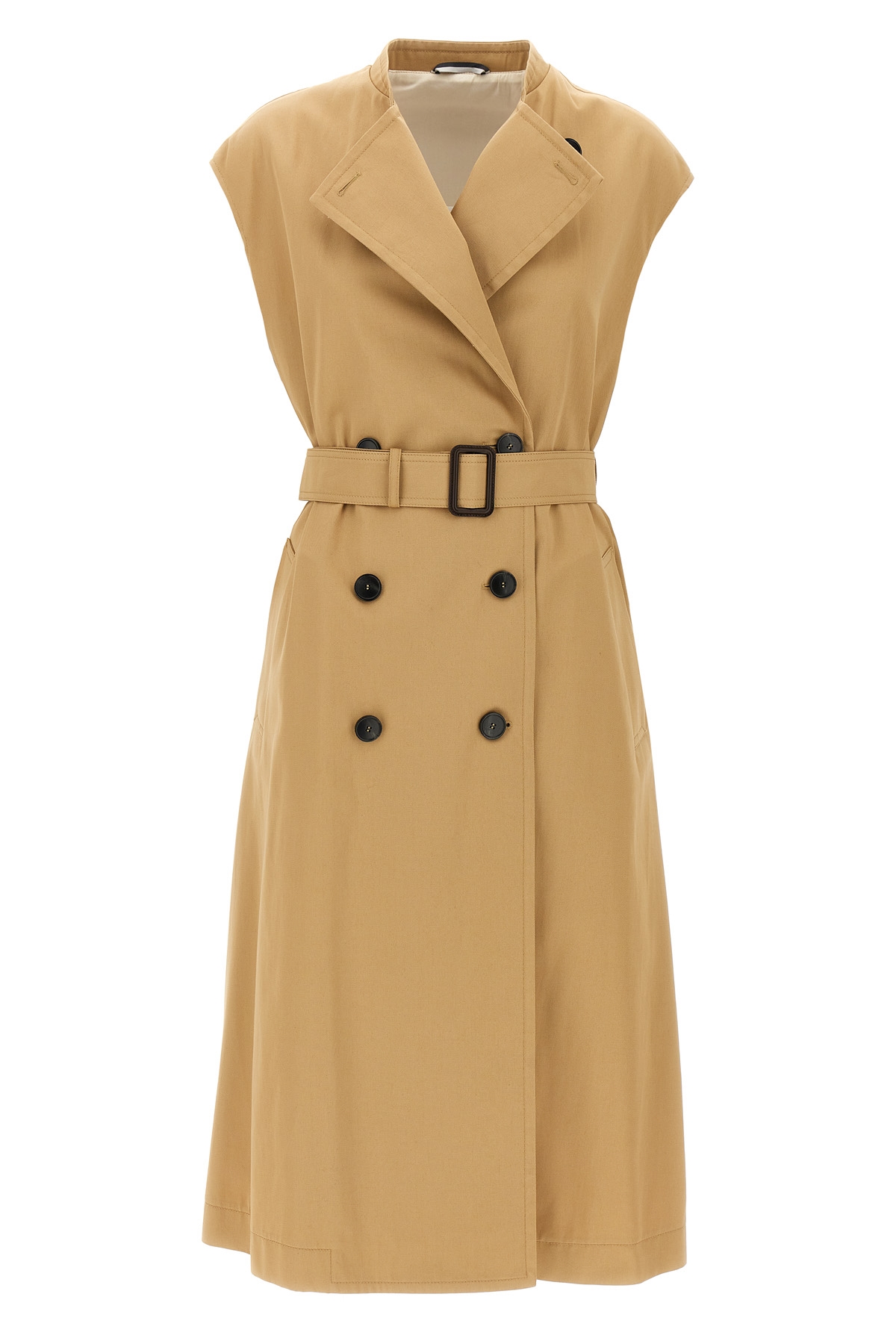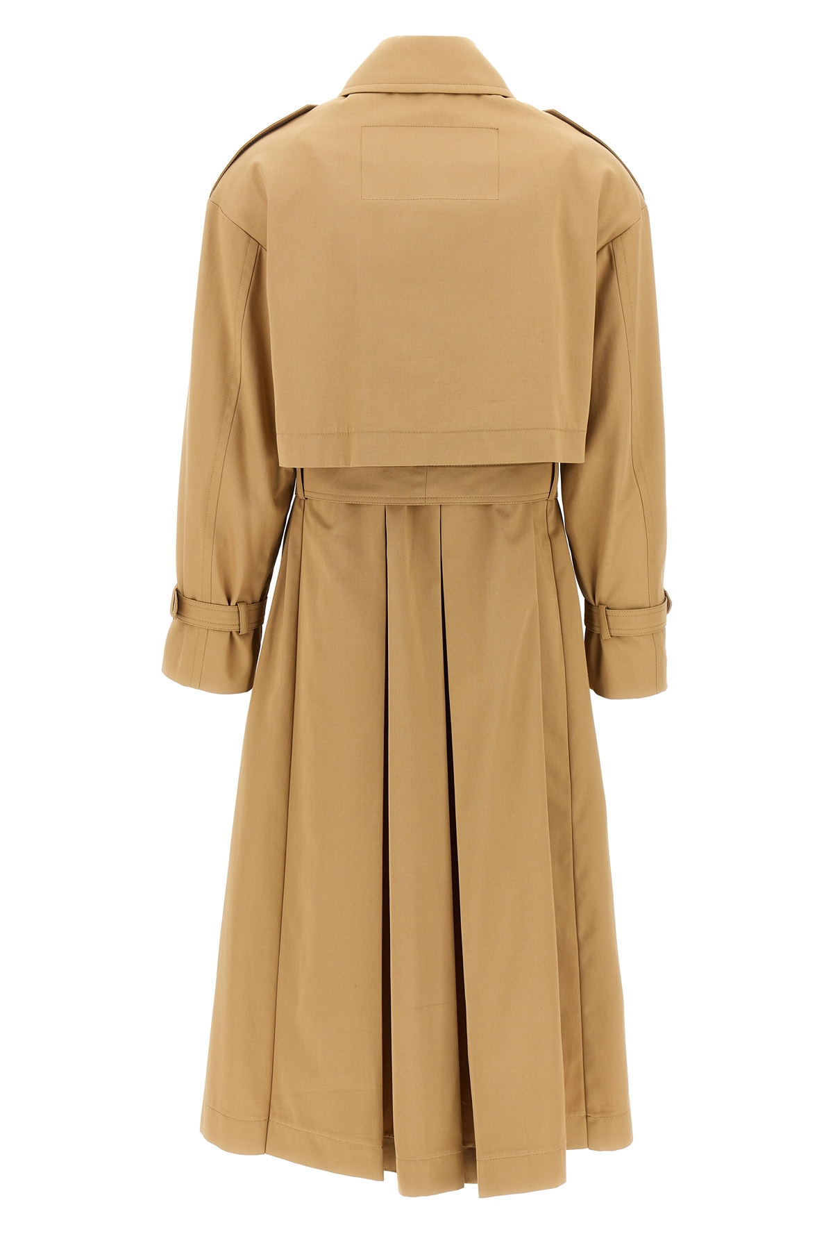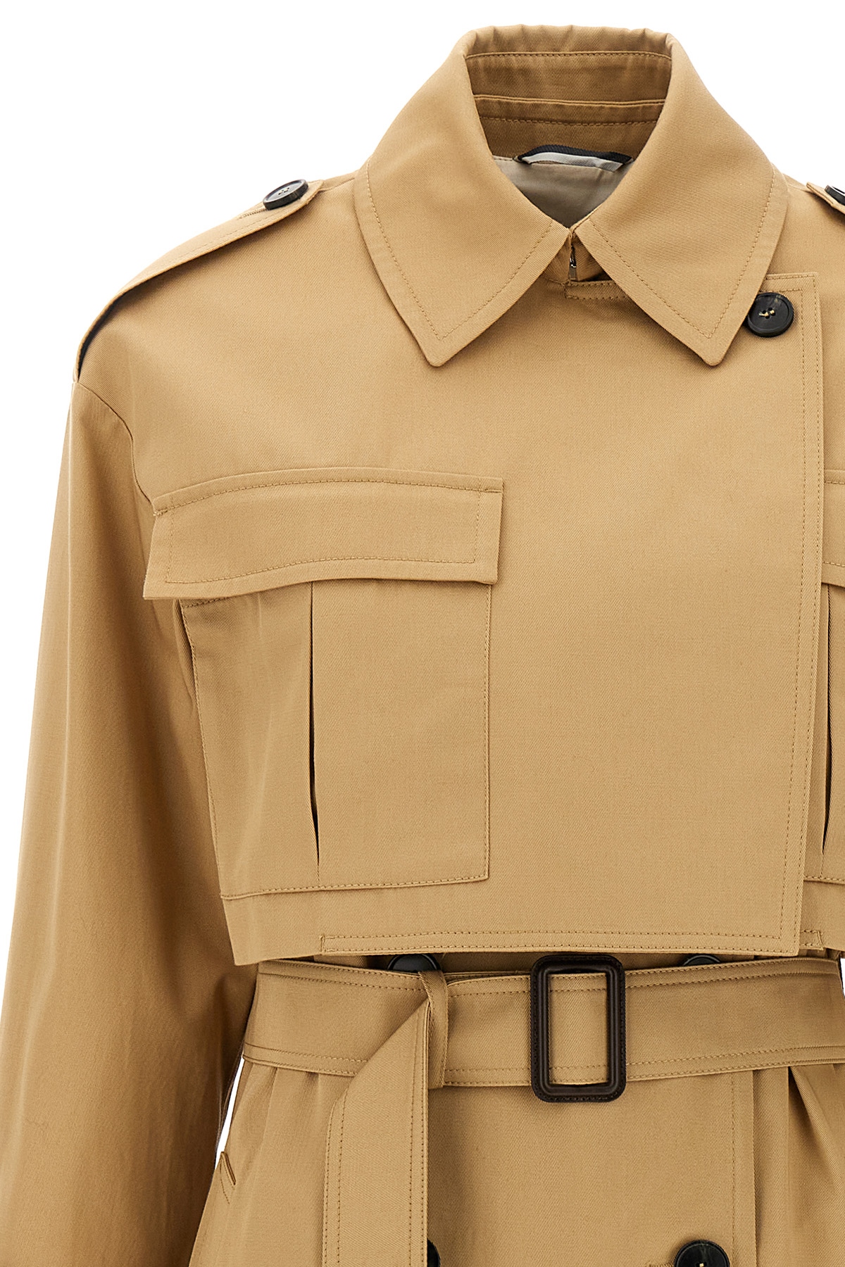 'Vivetta' double-breasted cotton gabardine trench coat with buttons, patch pocket detail, adjustable waist belt with buckle, long sleeves with adjustable straps.