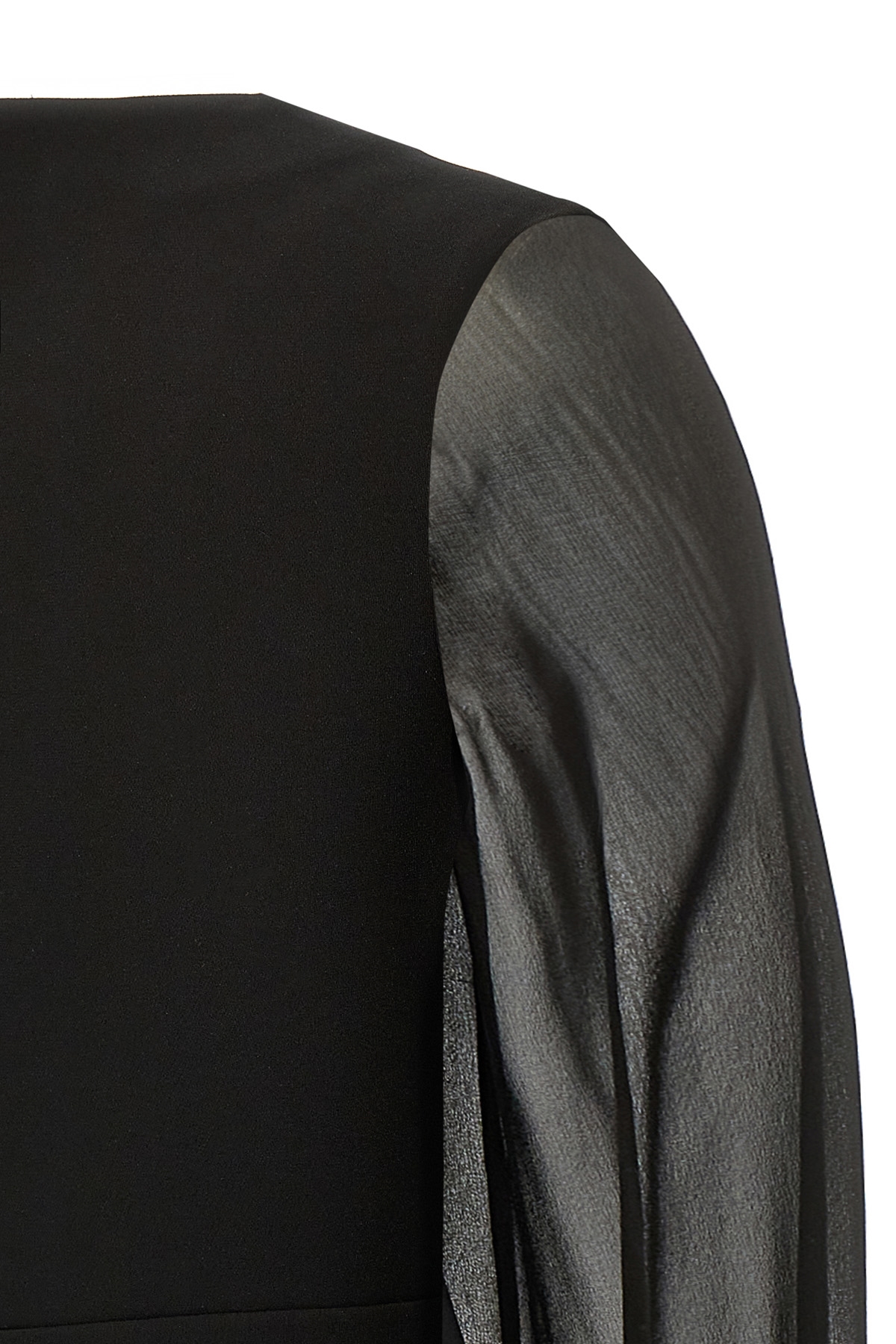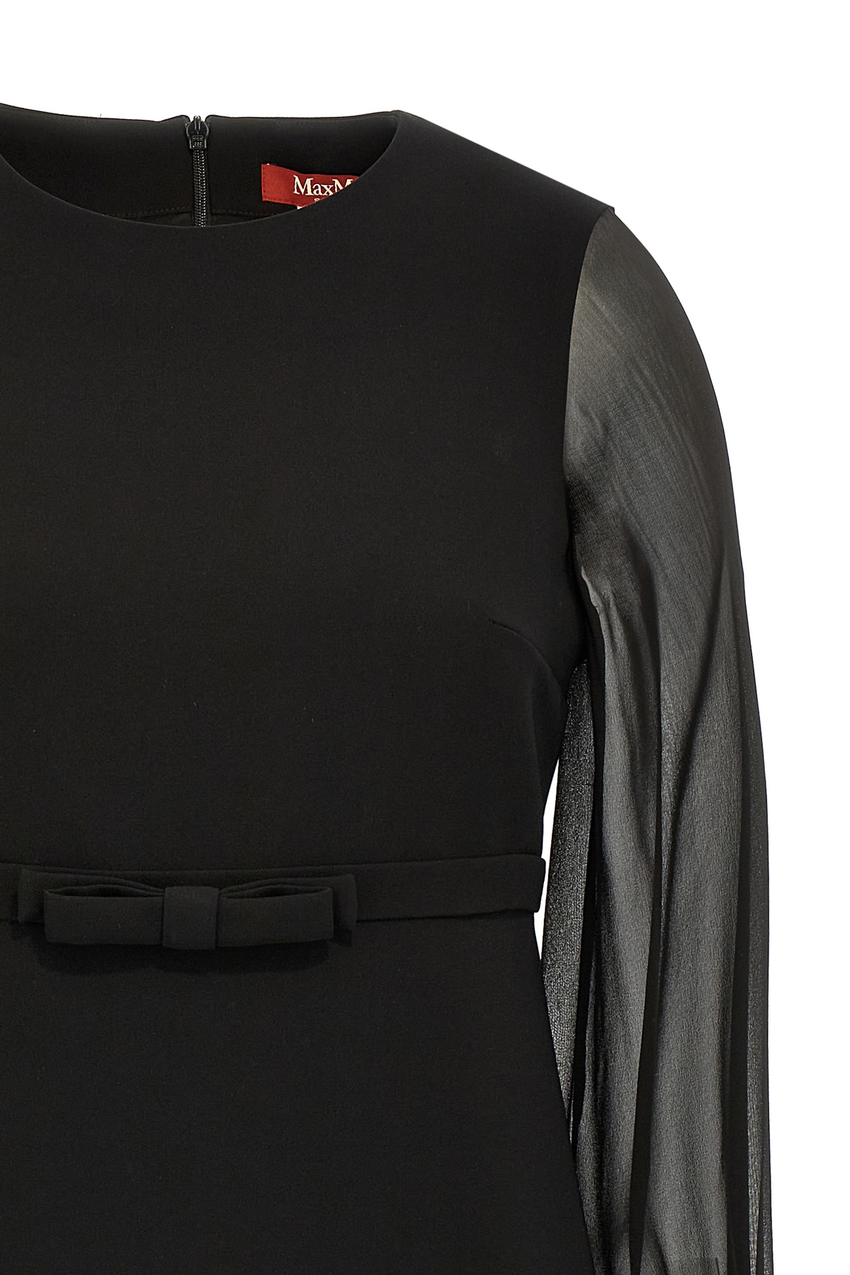 'Ritmo' midi dress, crew neck, bow detail at the waist, back zip closure, semi-transparent sleeves, long, button cuffs.