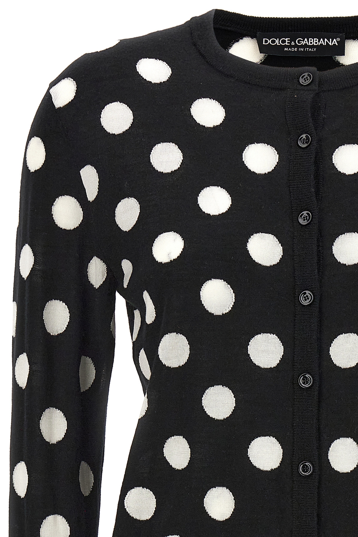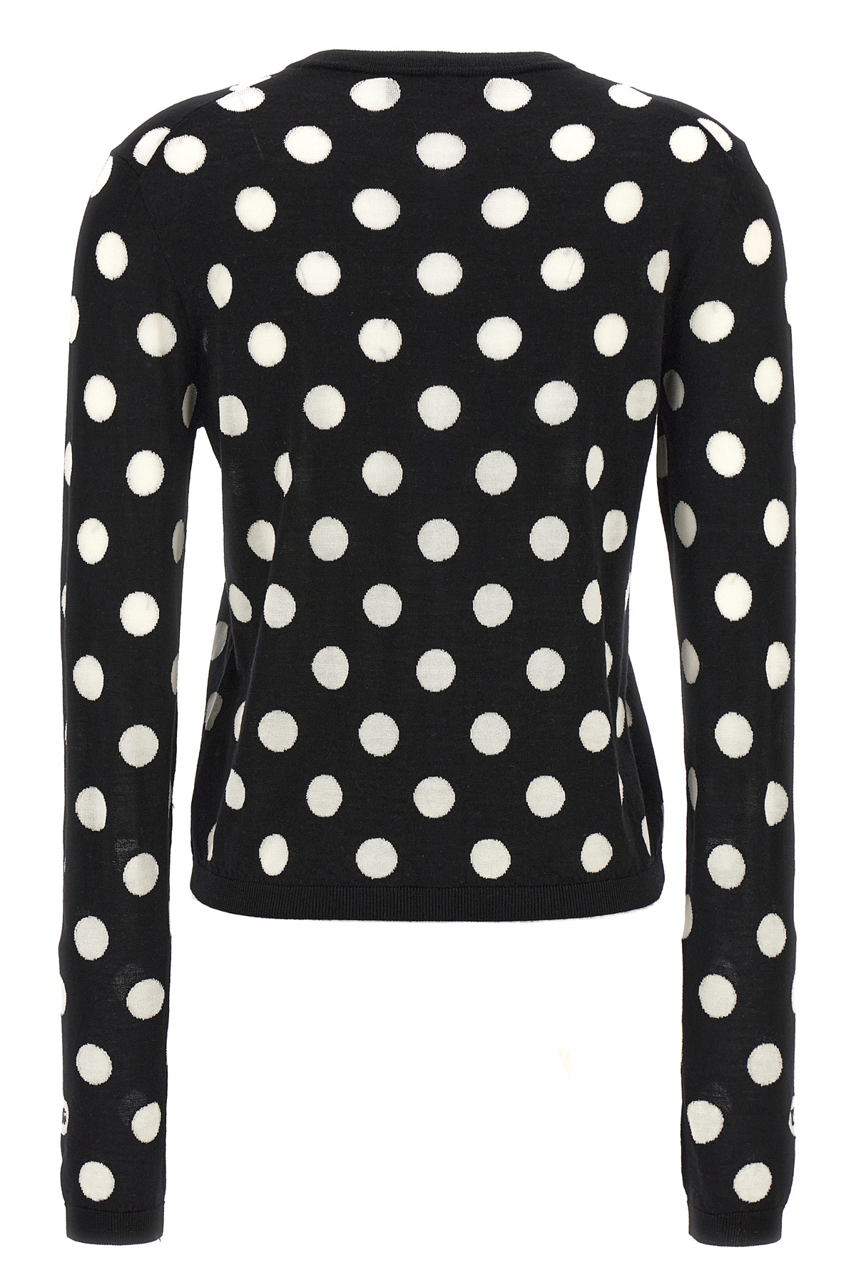 'Mambo' polka dot wool and silk cardigan with crew neck, long cuffed sleeves.