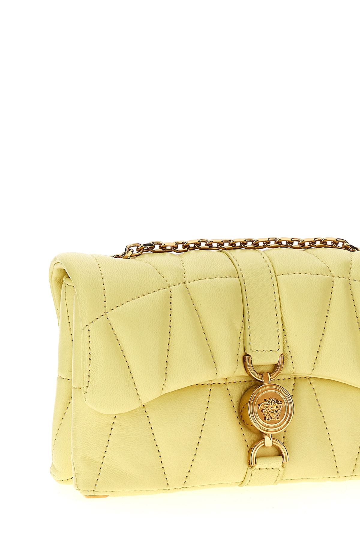'Mini Kleio' quilted nappa leather clutch, magnetic flap closure with 'Medusa'95' metal detail, Removable chain shoulder strap.