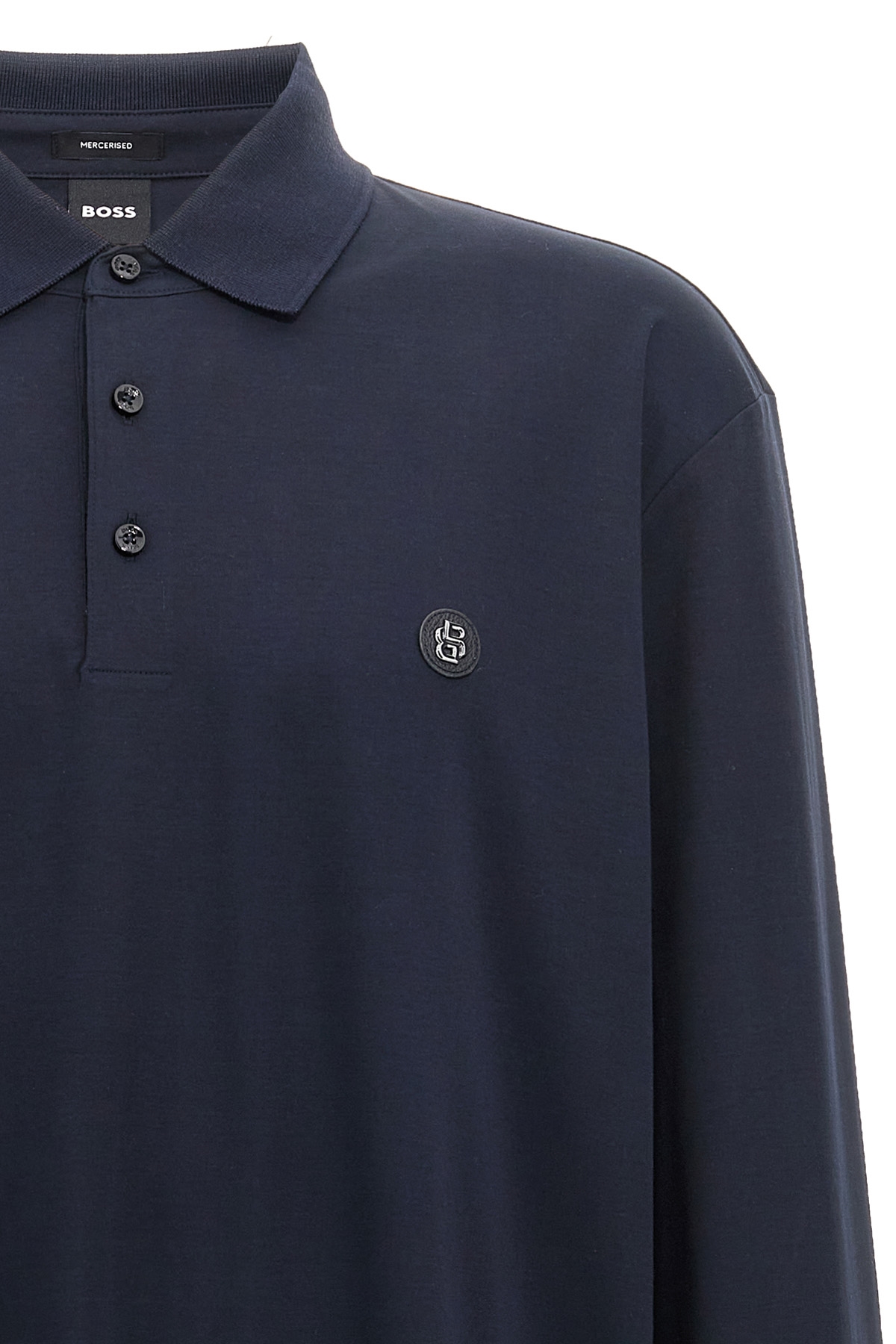 Mercerized cotton 'C-Paley' polo shirt, metal logo patch, button collar, side splits, long sleeves. SUSTAINABLE: product made from sustainable materials.