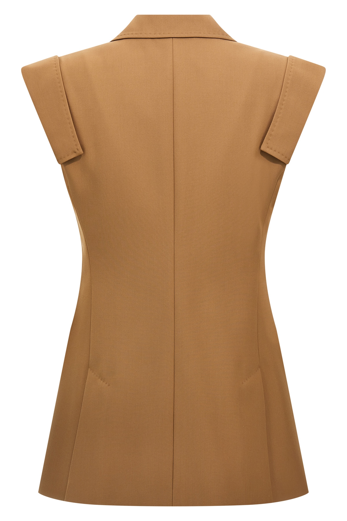 Sleeveless 'Bergamo' blazer in pure wool gabardine with turned-up flap sleeves, single-breasted button closure, Monogram stretch fabric lining, pockets, double back split.