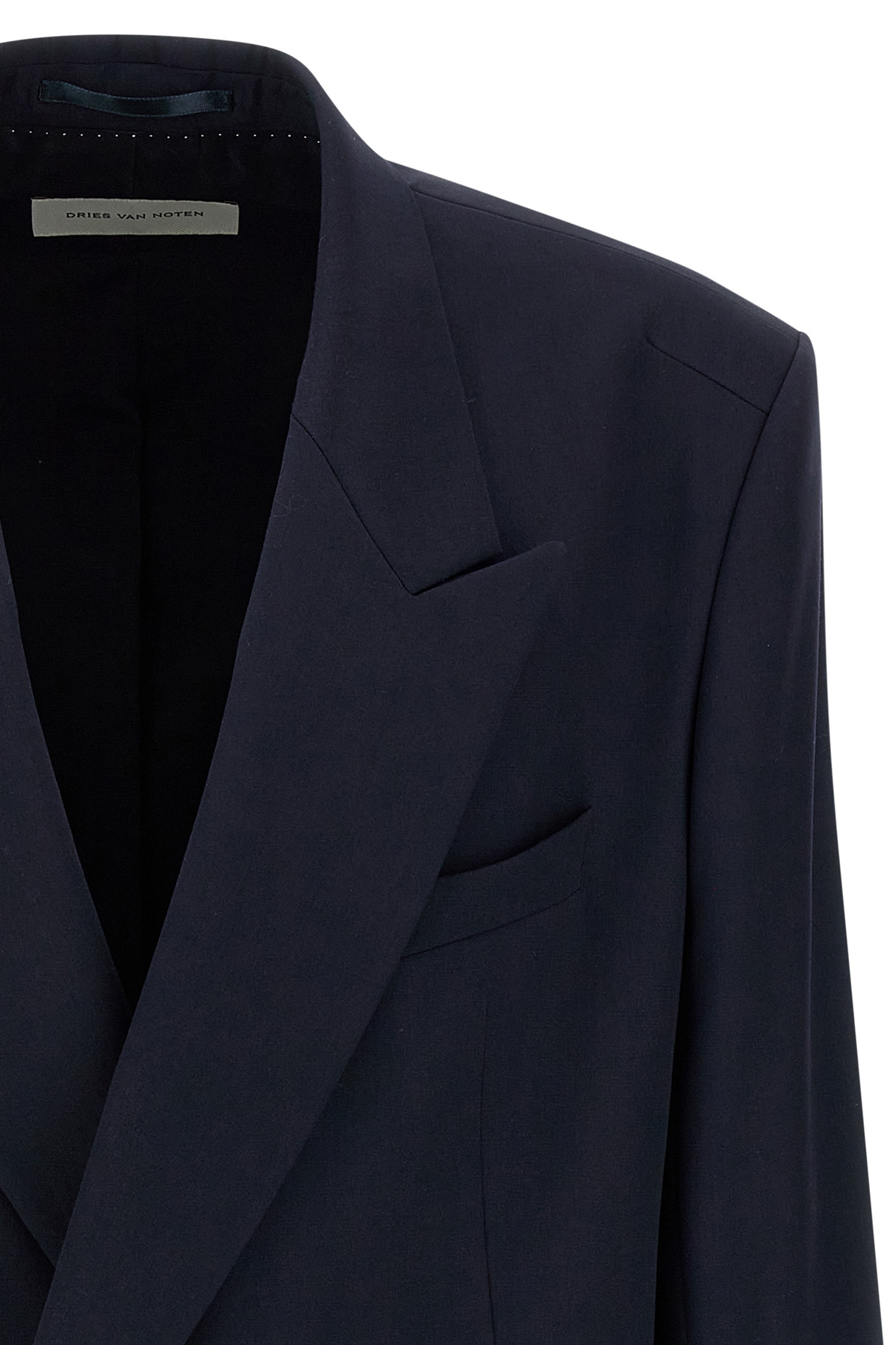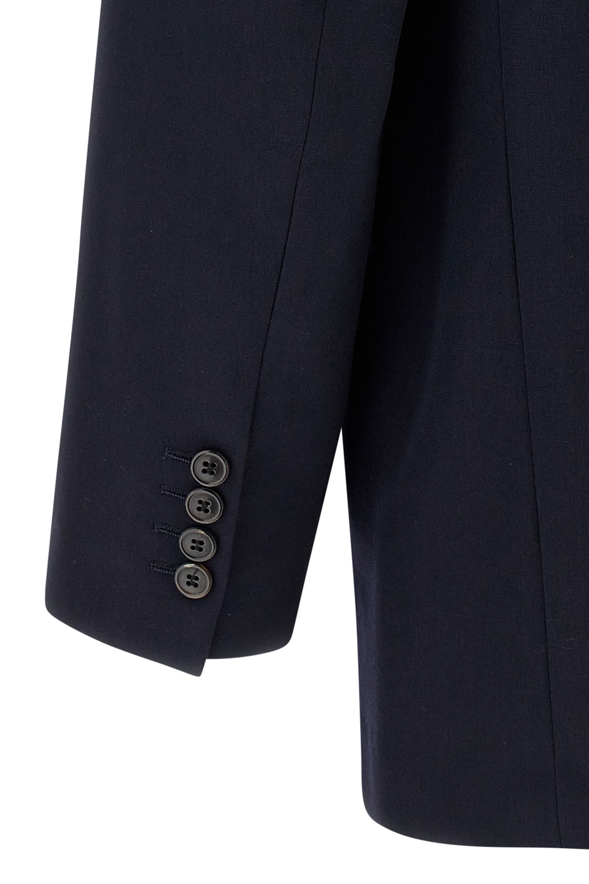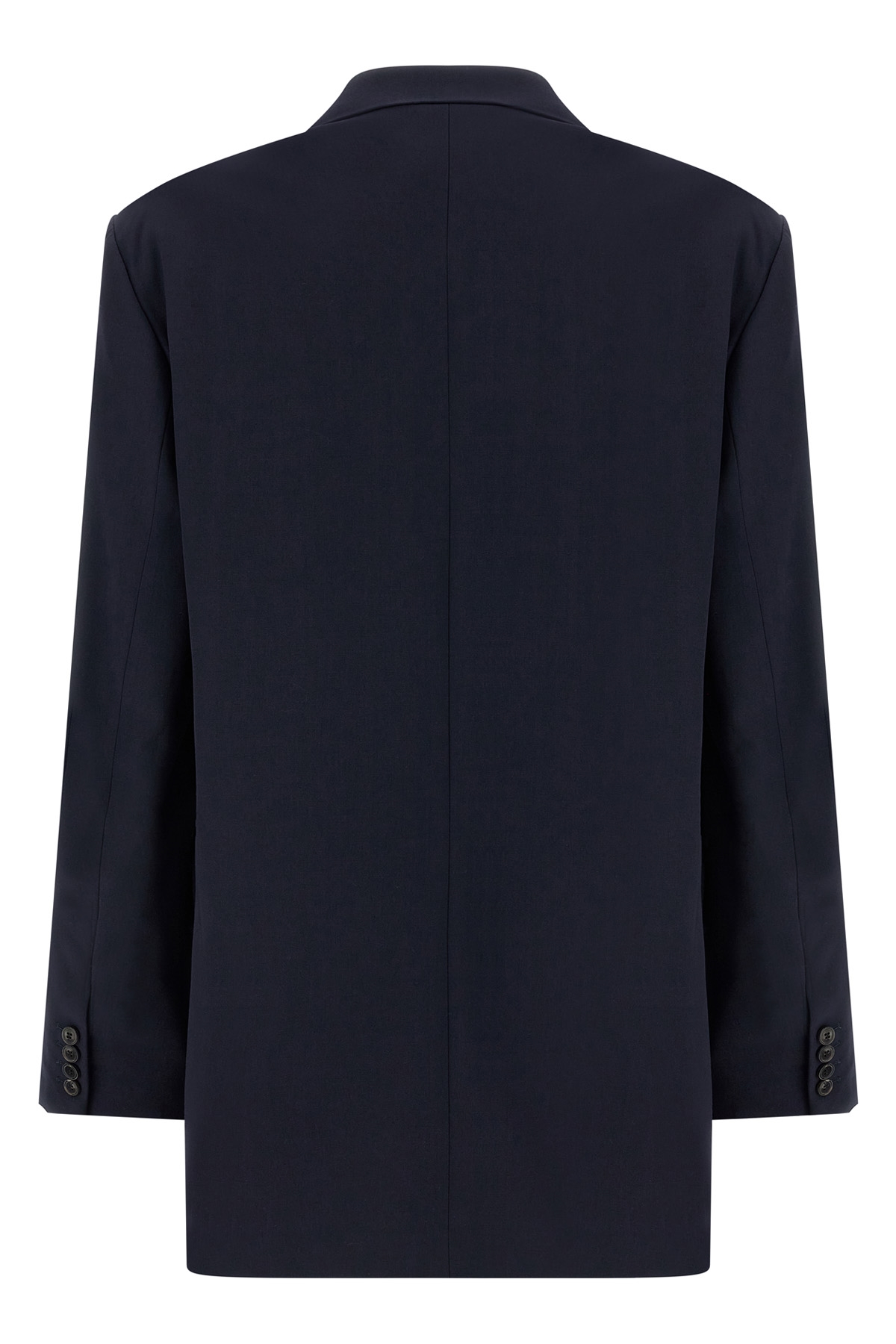Double-breasted wool 'Bishop' blazer with peak lapels, button closure, pockets, long sleeves, padded shoulders.