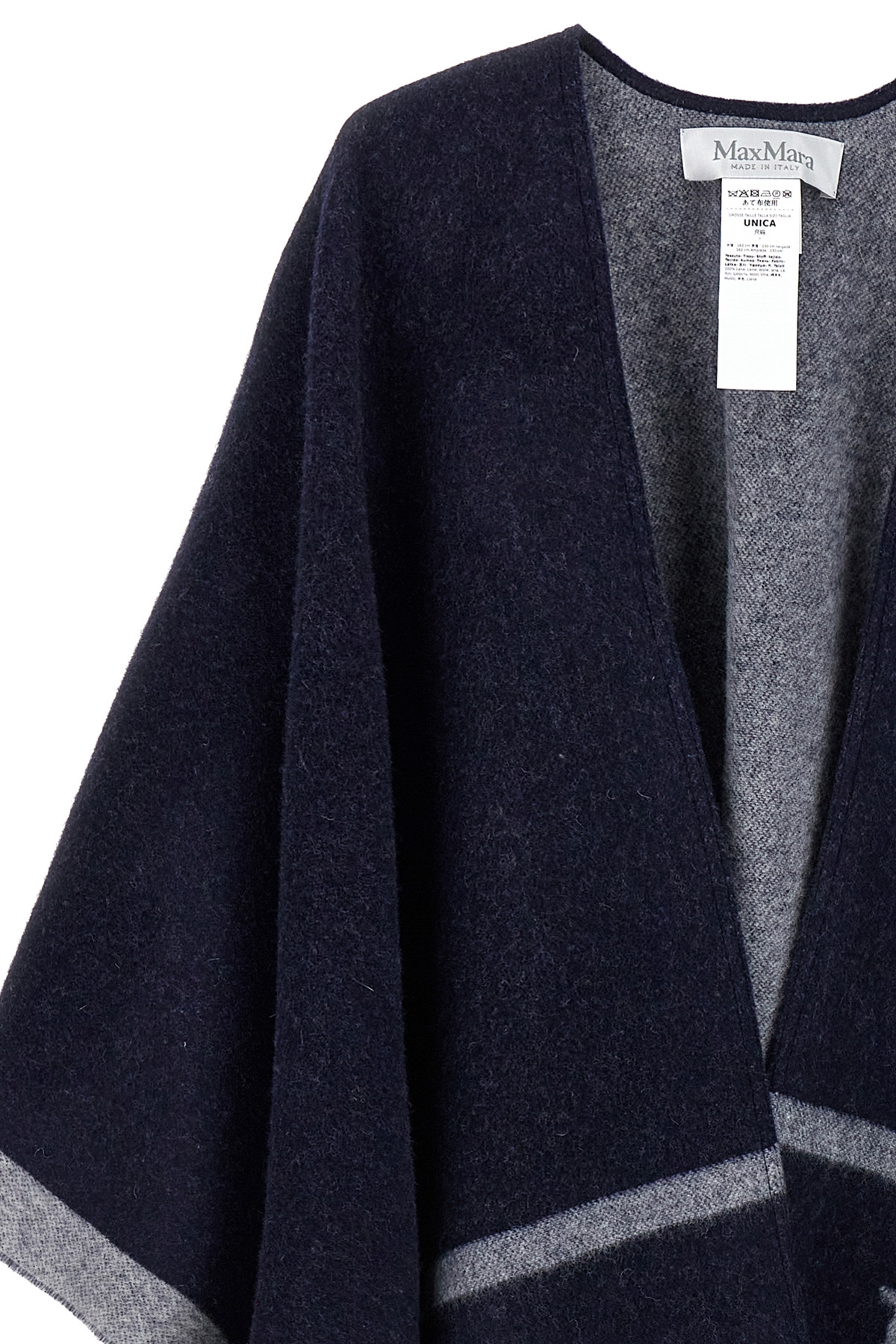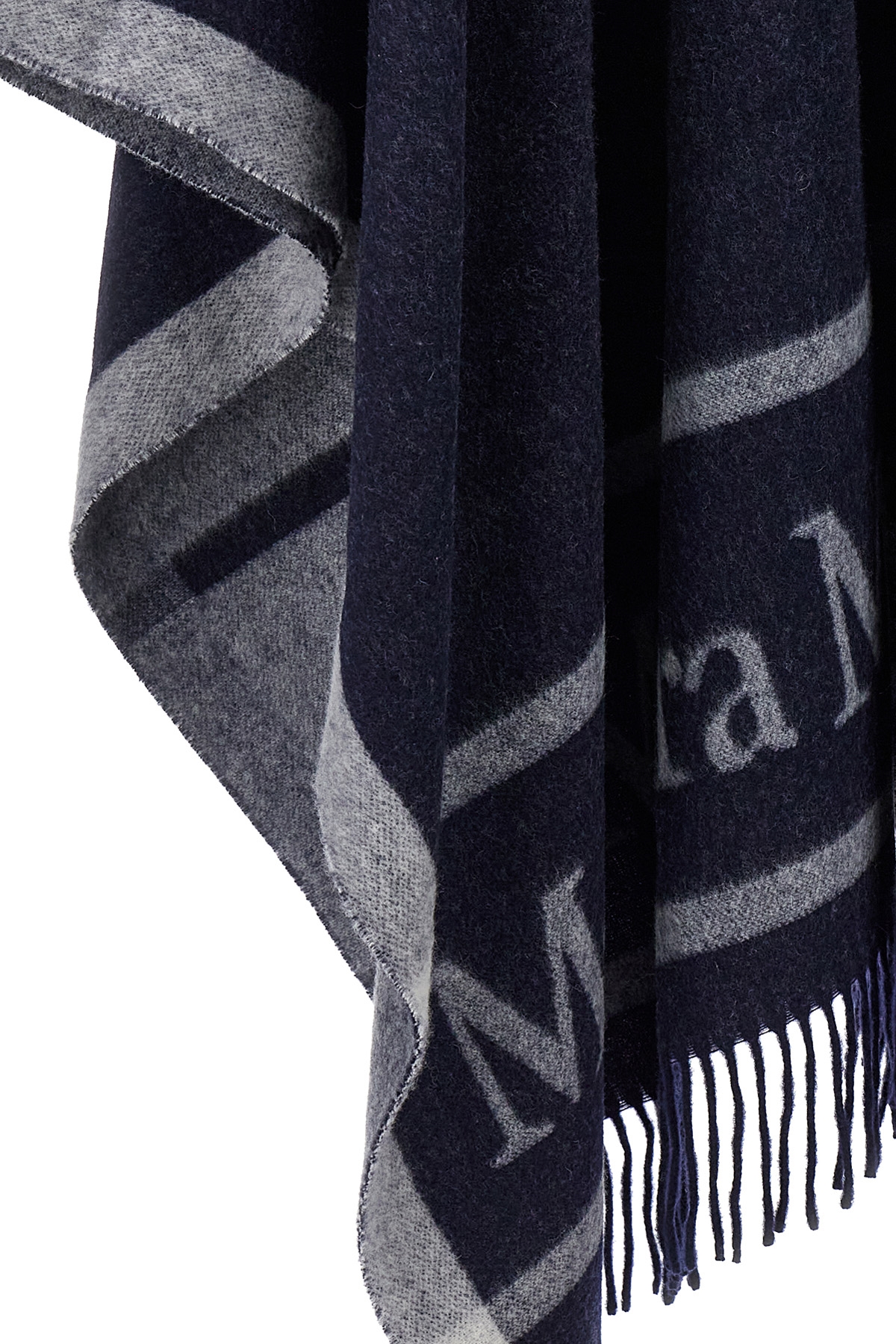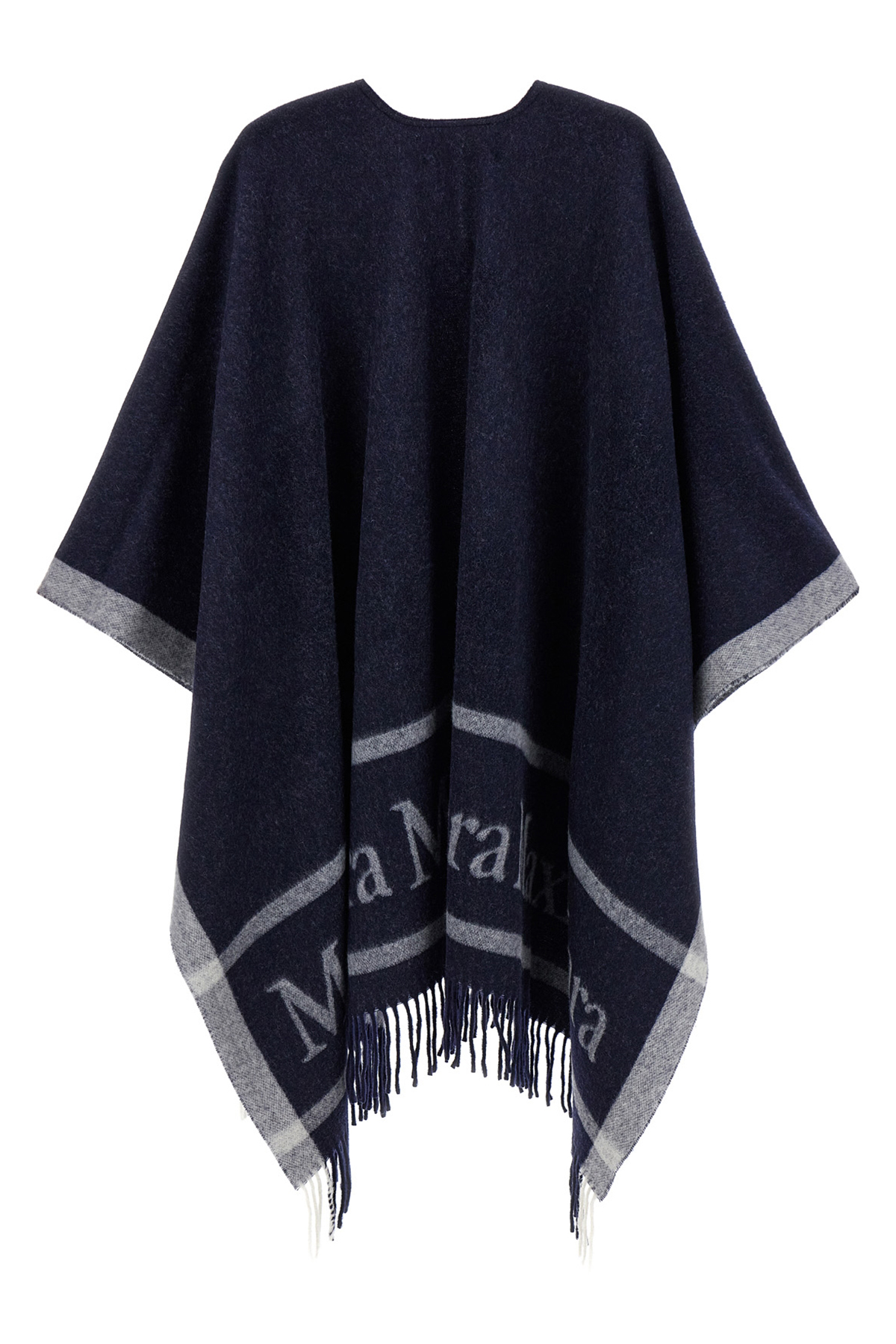 'Hilde' cape in yarn-dyed wool yarn with logo and contrast jacquard details and fringes on the hem.