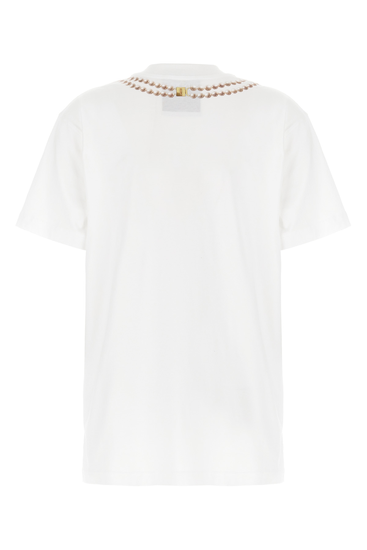‘Colazione' crewneck cotton t-shirt with front print. contrast piping, and a cropped style.