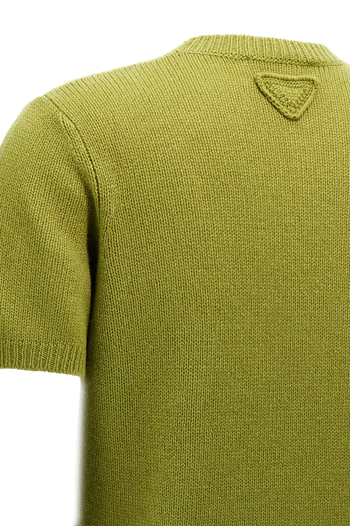 Cashmere sweater, crew neck, short sleeves.