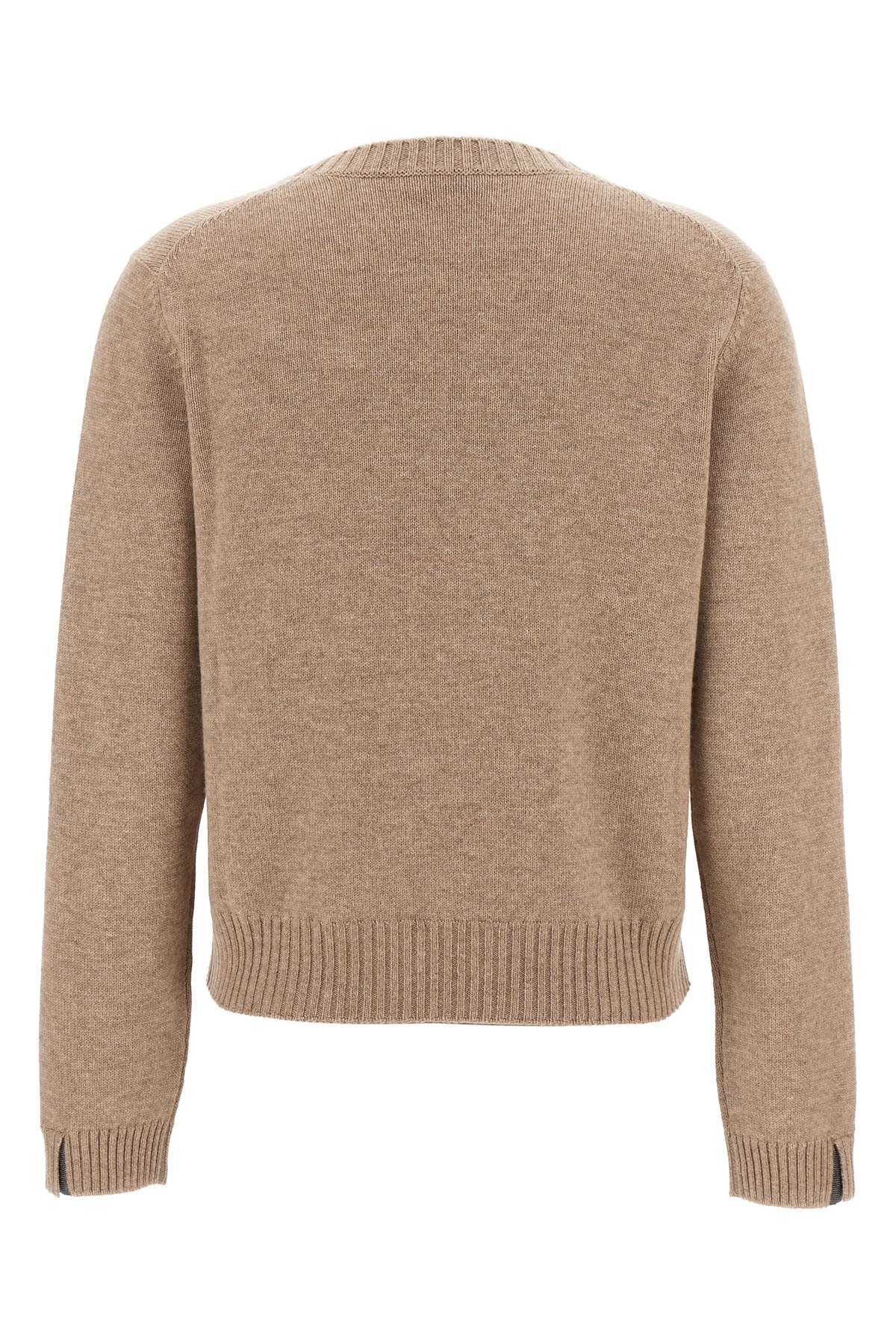 Cashmere sweater with crew neck and long cuffed sleeves.
