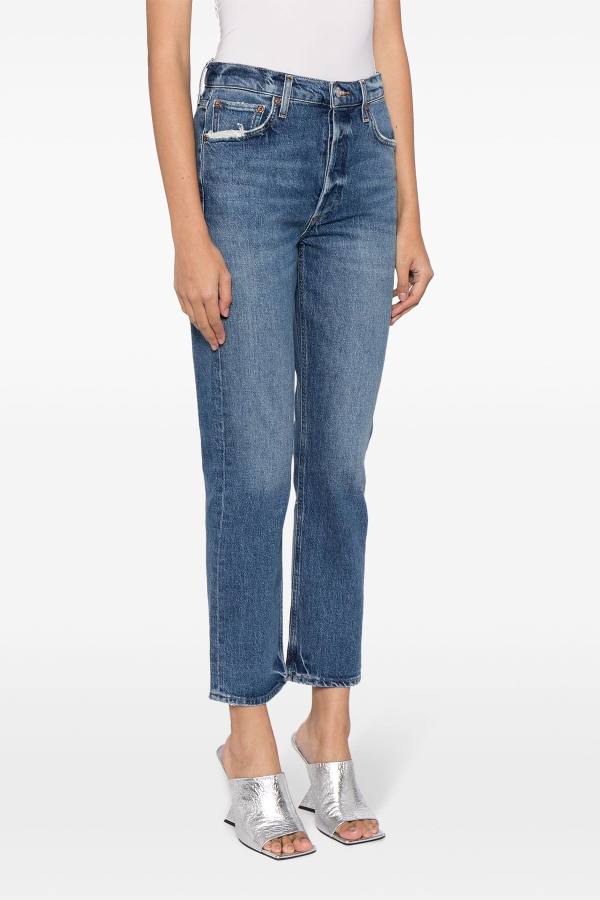 'Riley Long' cotton denim jeans with used-effect details, button closure, five pockets.