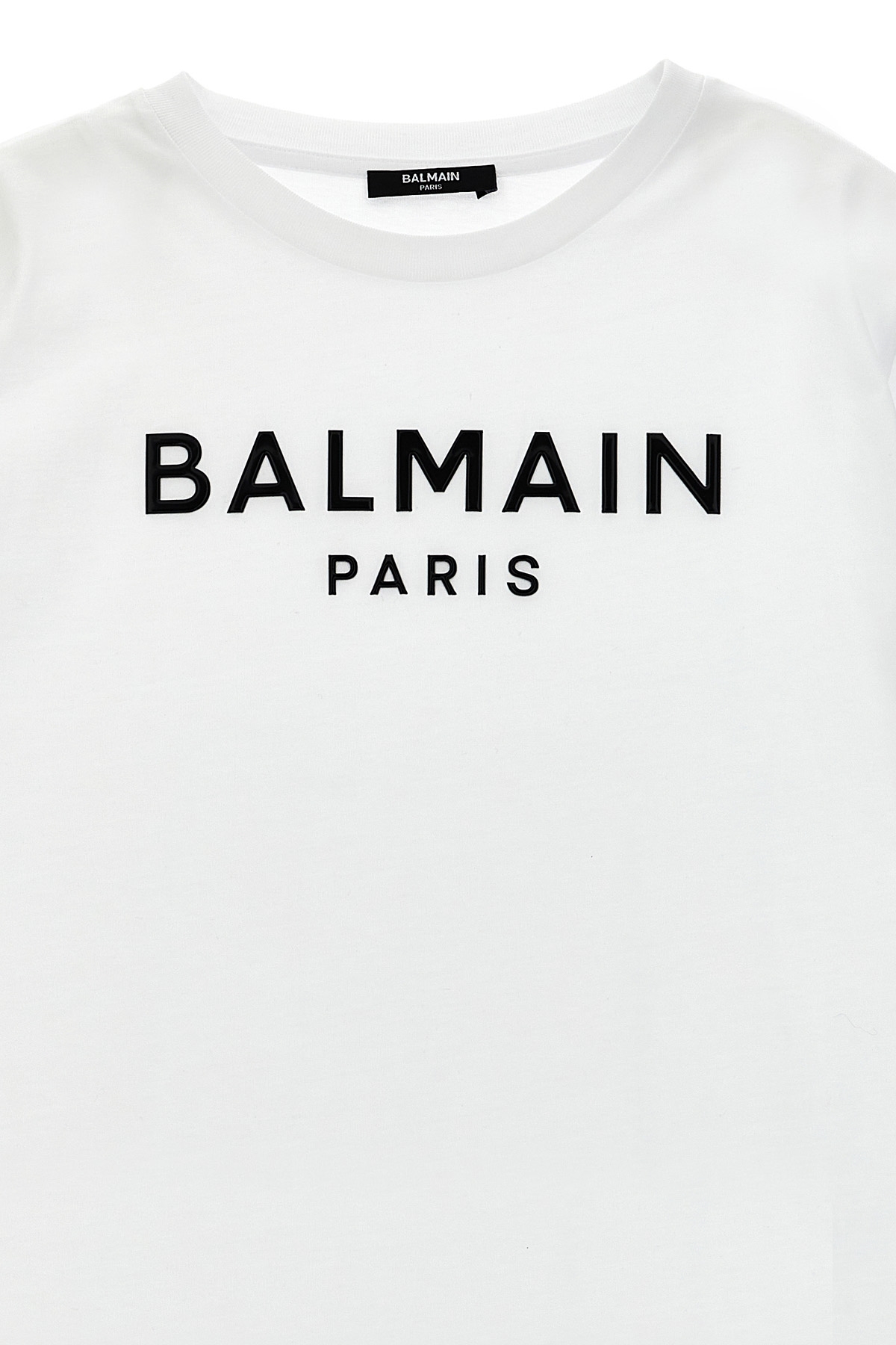 KIDS Cotton dress with embossed logo on the front, crew neck, short sleeves.