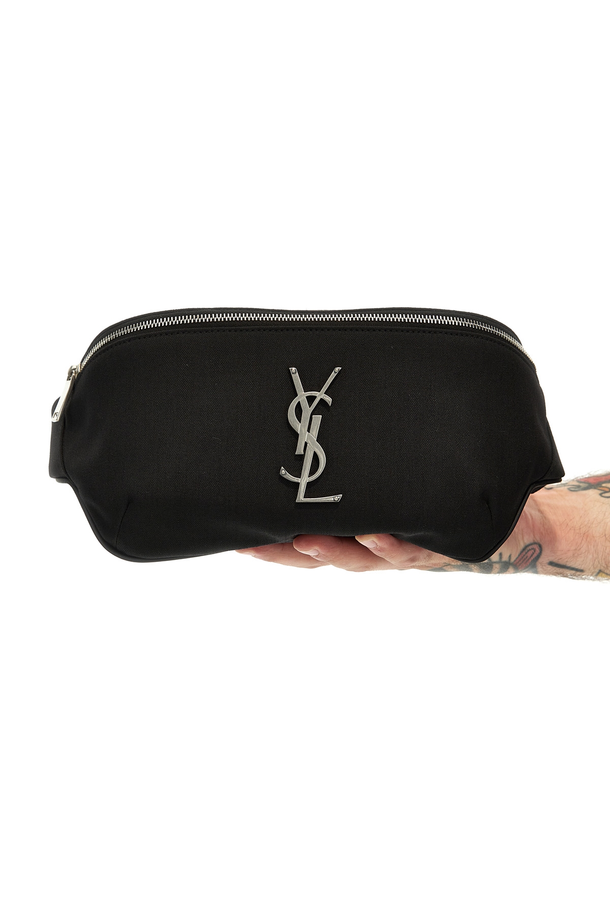 'Classic Logo Monogramme' waist bag in technical fabric with piping and leather belt embellished with silver metal monogramme logo.