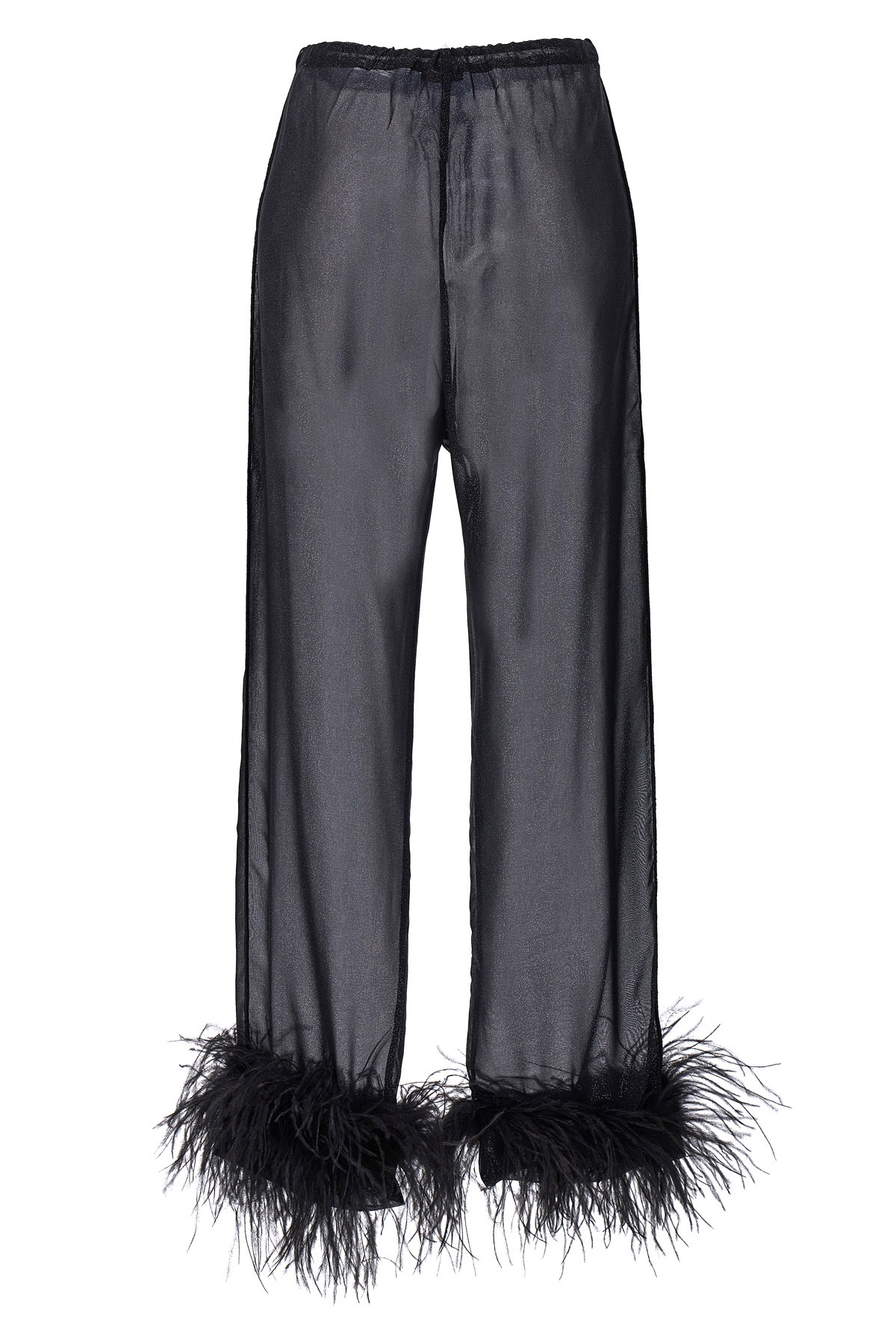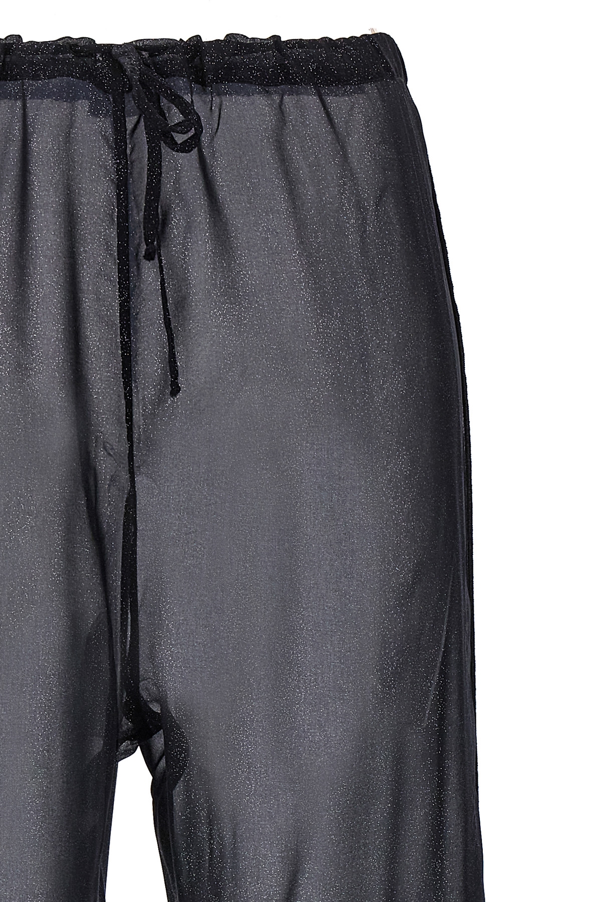 'Plumage' trousers in lurex fabric with feathers at the hem, adjustable drawstring at the waist.