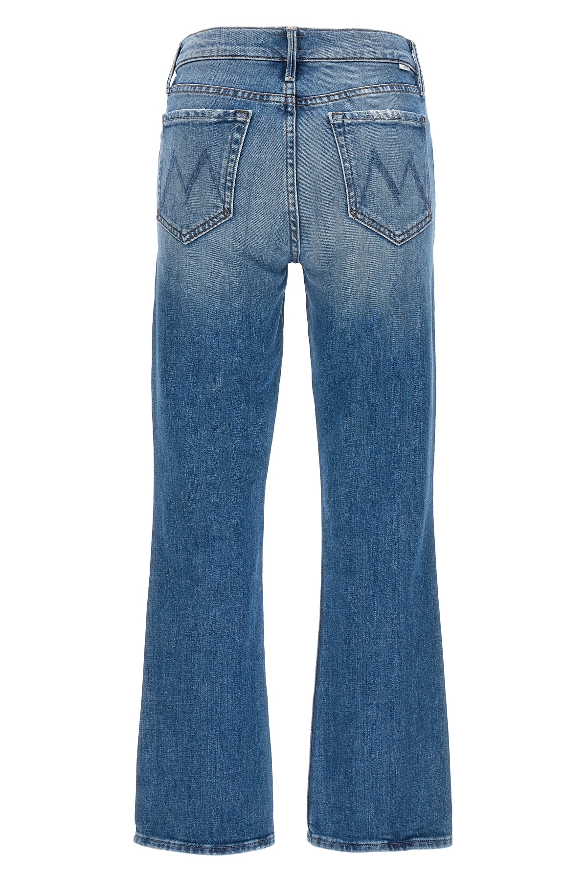 'The outsider ankle' stretch denim jeans with slightly flared leg, high waist, zip and button closure.