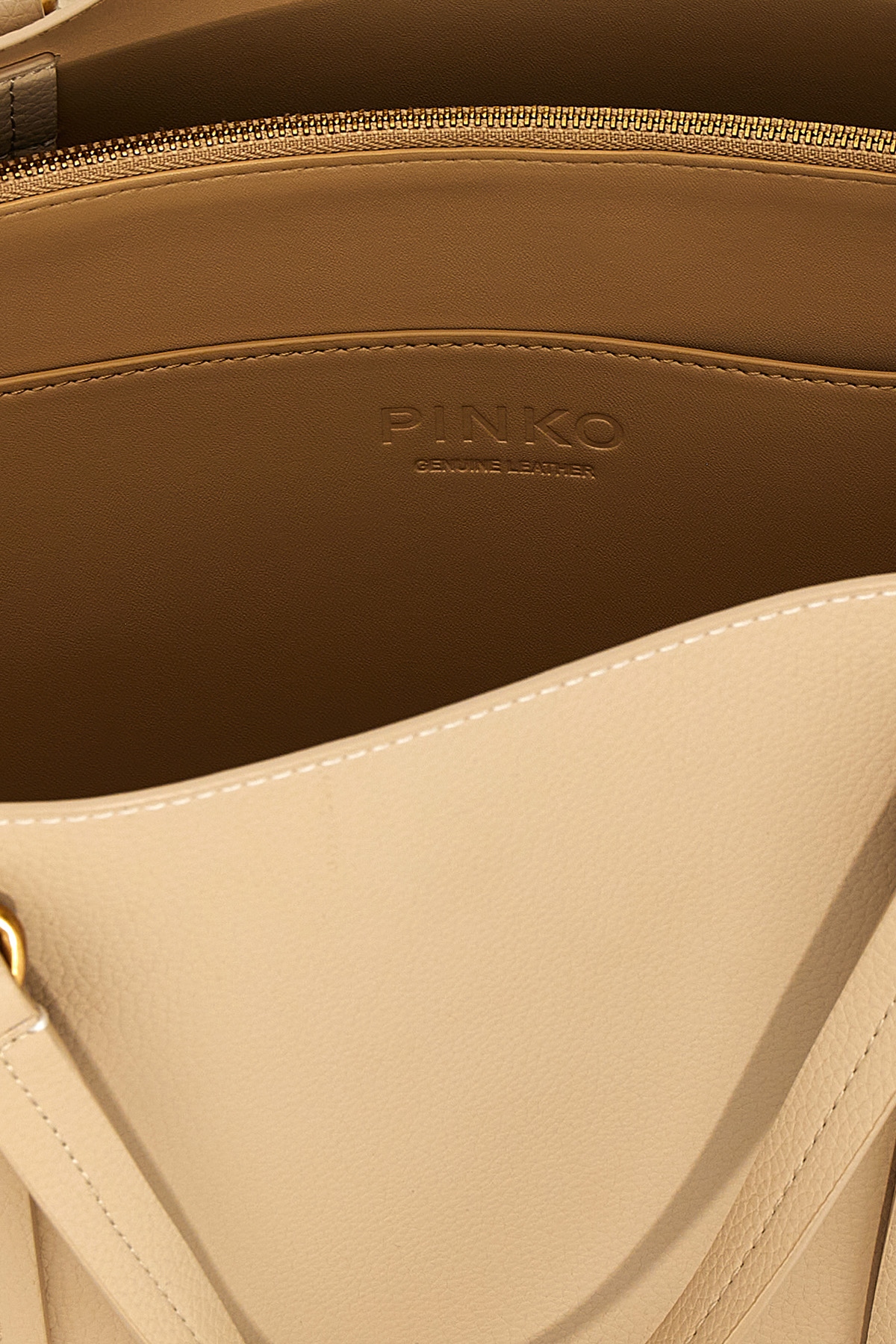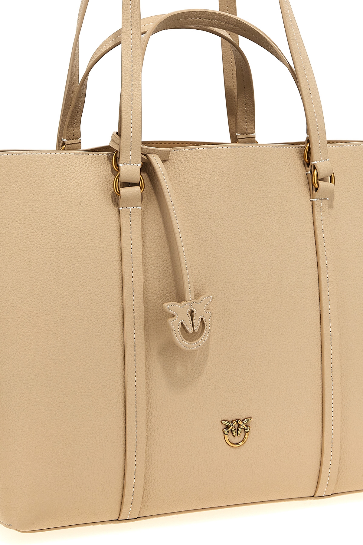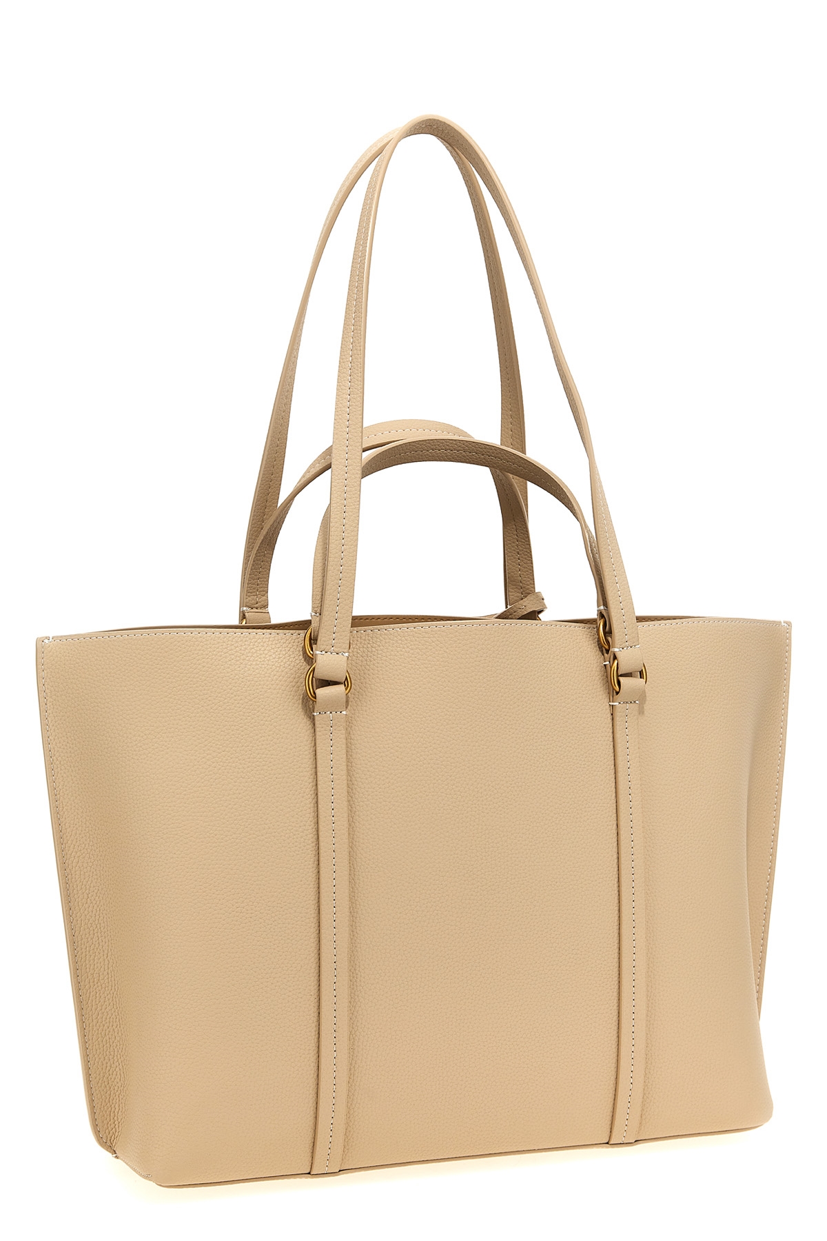 'Carrie' shopping bag in botched leather, double handles of different sizes, logo charm.