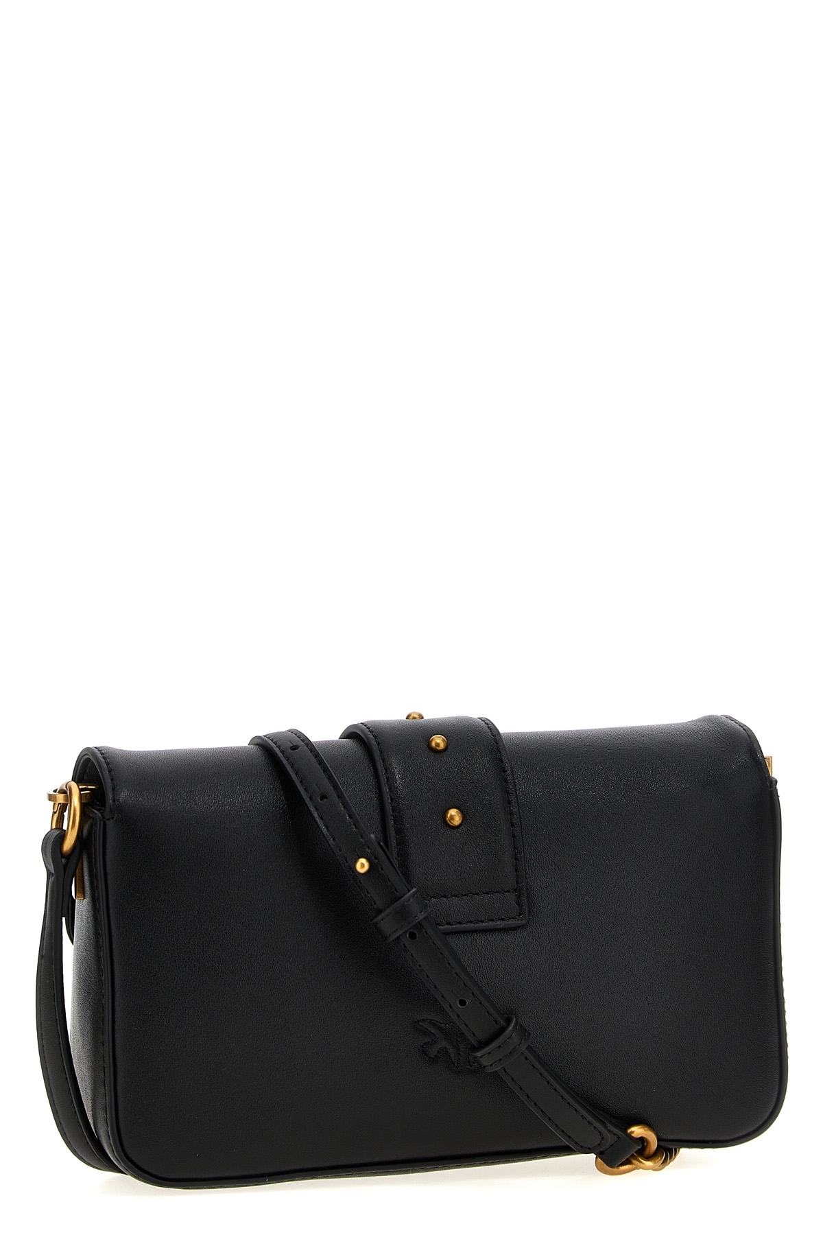'Love One mini' leather crossbody bag, magnetic closure with front metal logo applique, leather shoulder strap and removable chain.