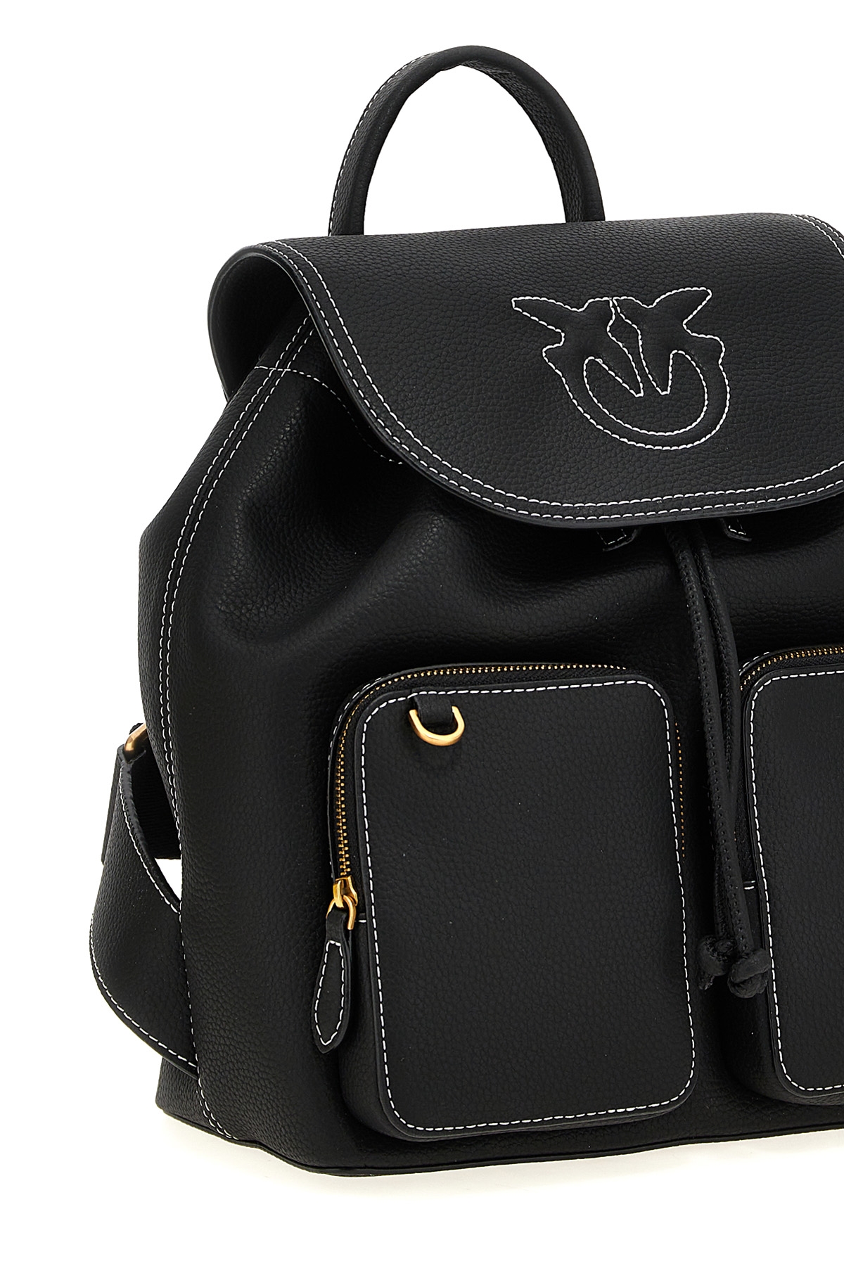 'Carrie' bottalata leather backpack, front pockets, drawstring and flap closure, adjustable shoulder straps.