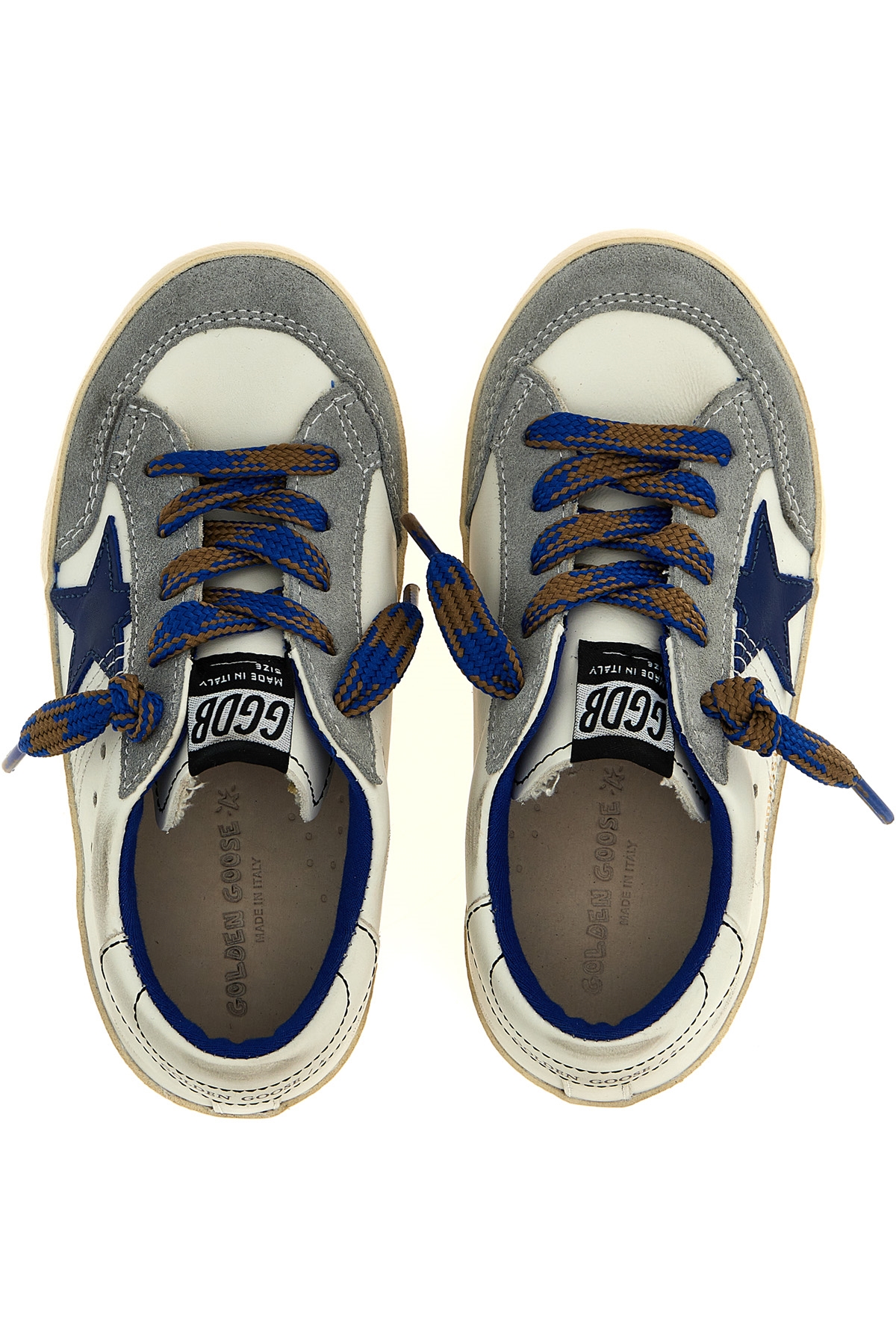 KIDS 'Superstar' leather and suede sneakers with contrast star, laces, rubber sole, used-effect details.