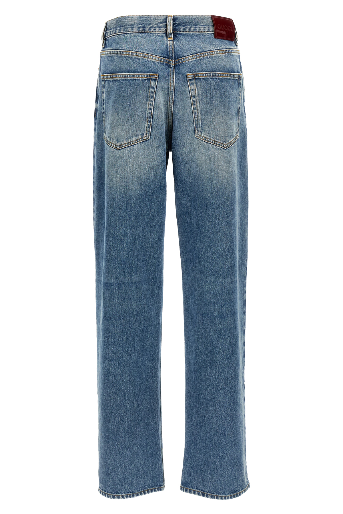 'Boyfriend' cotton denim jeans with mid waist with dropped crotch, slightly oversized fit, button closure, pockets, back logo tag.