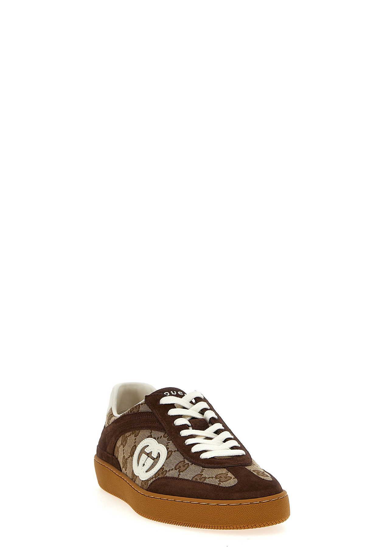 Suede and GG fabric sneakers, side 'Incrocio GG' logo, lace-up closure, metal logo on the tongue, rubber sole.