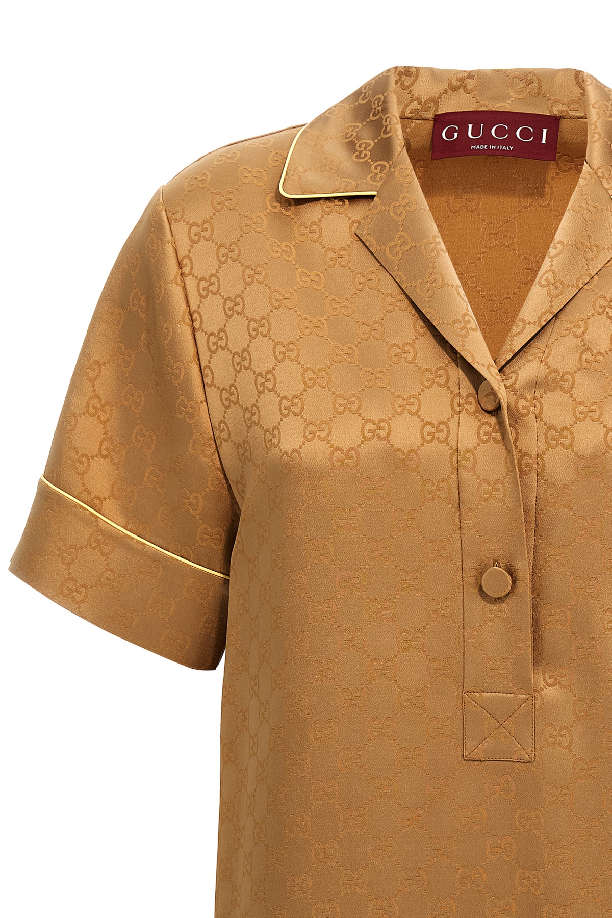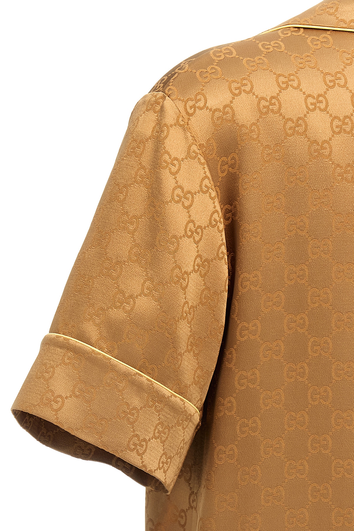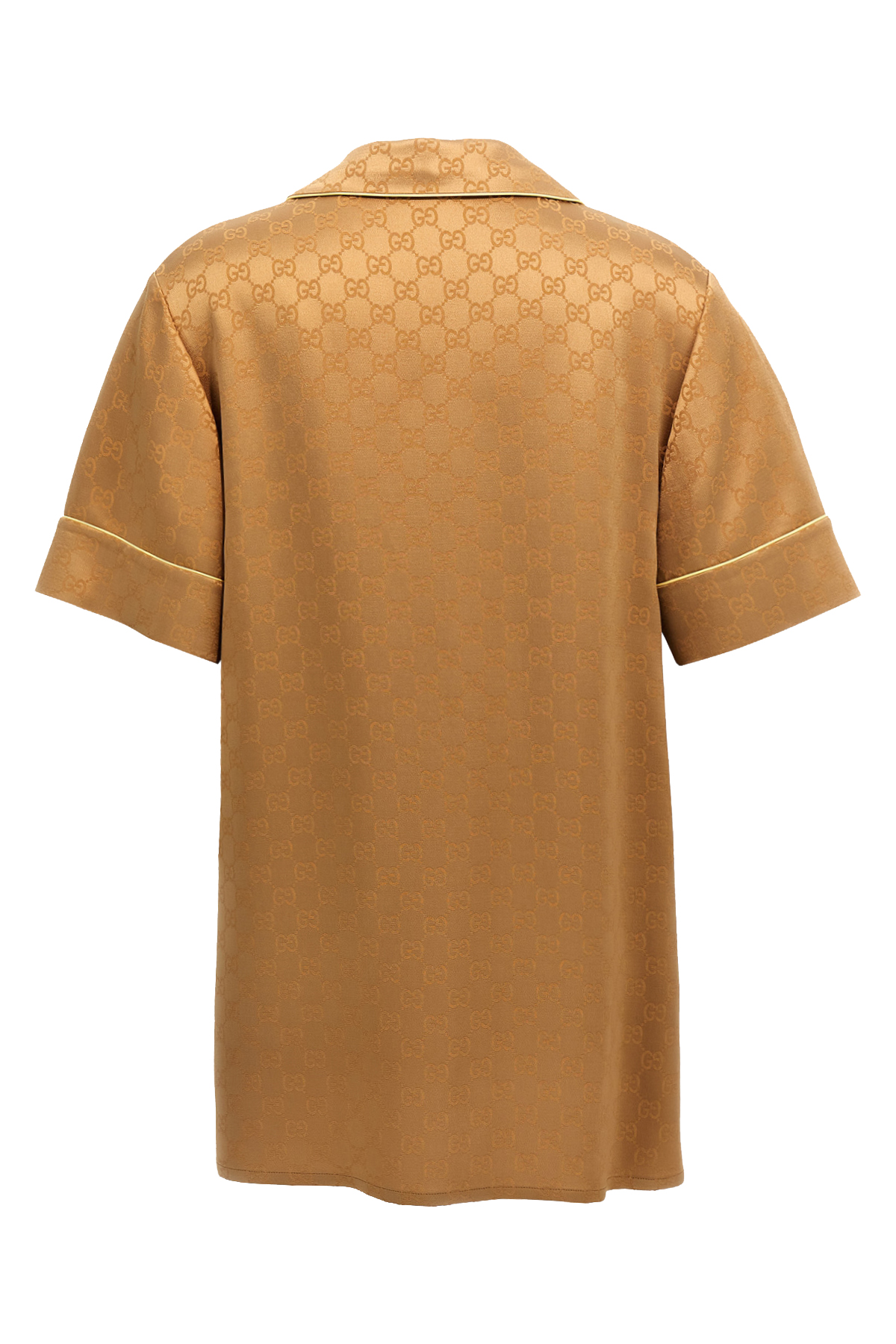 All-over GG monogramm satin shirt with solid color details, collar and buttons, short sleeves with dropped shoulders.