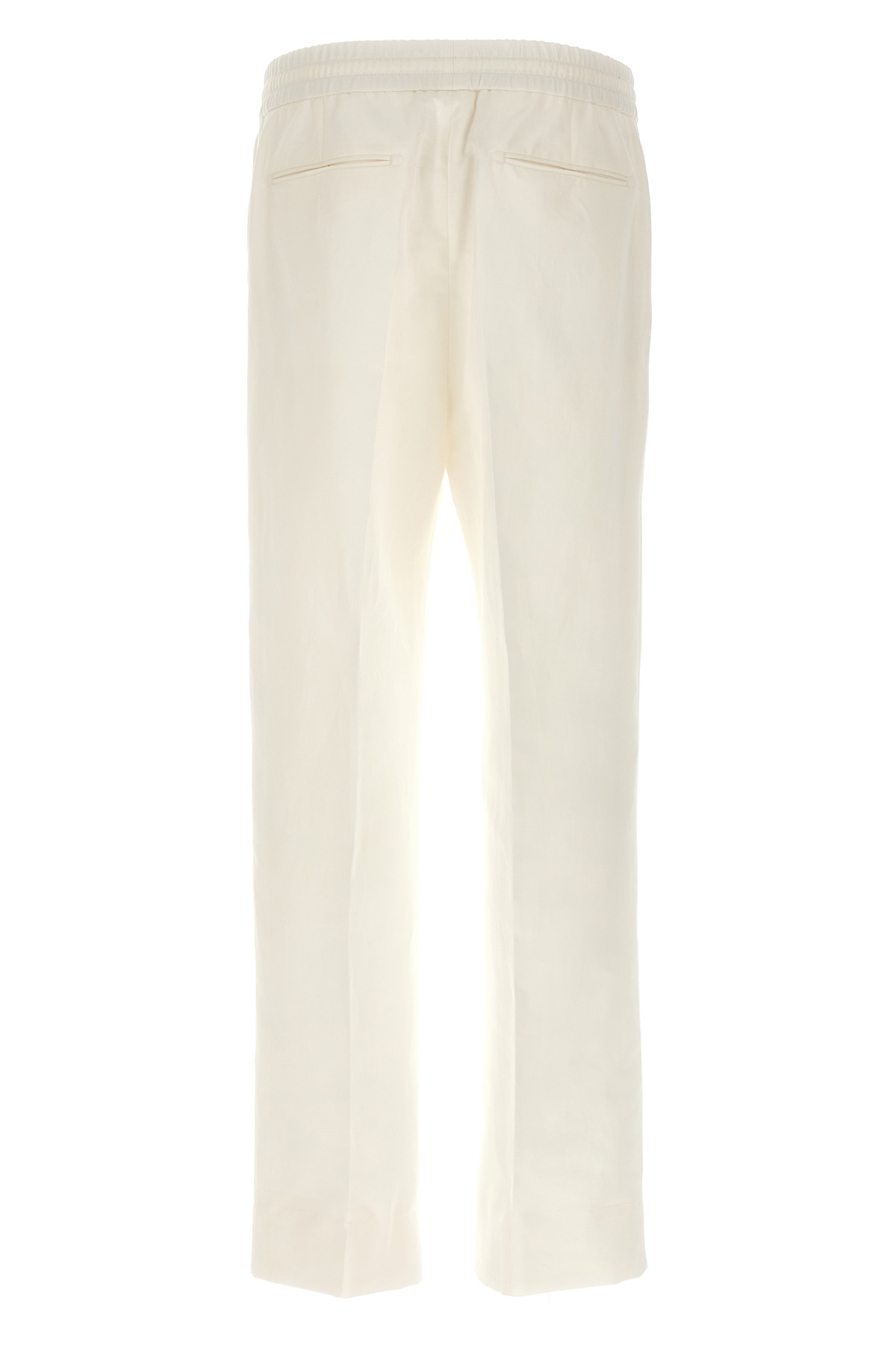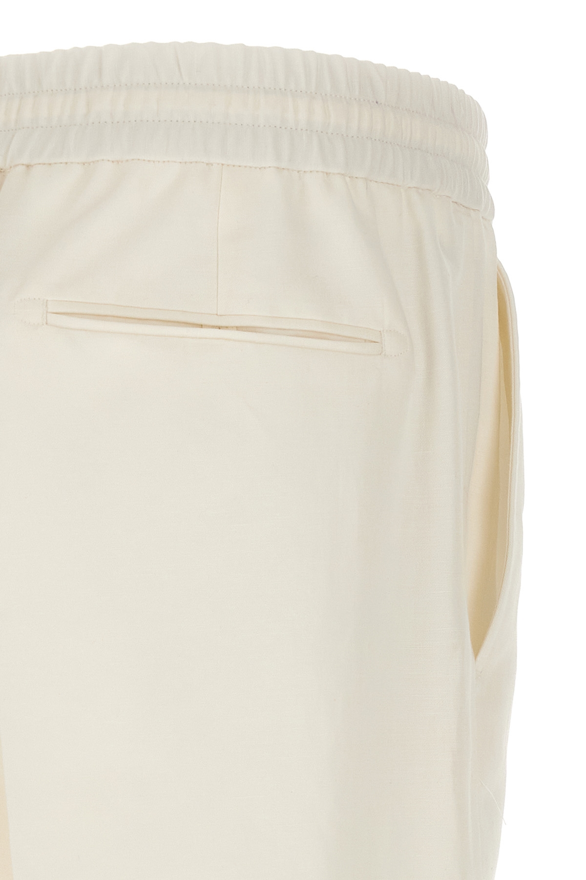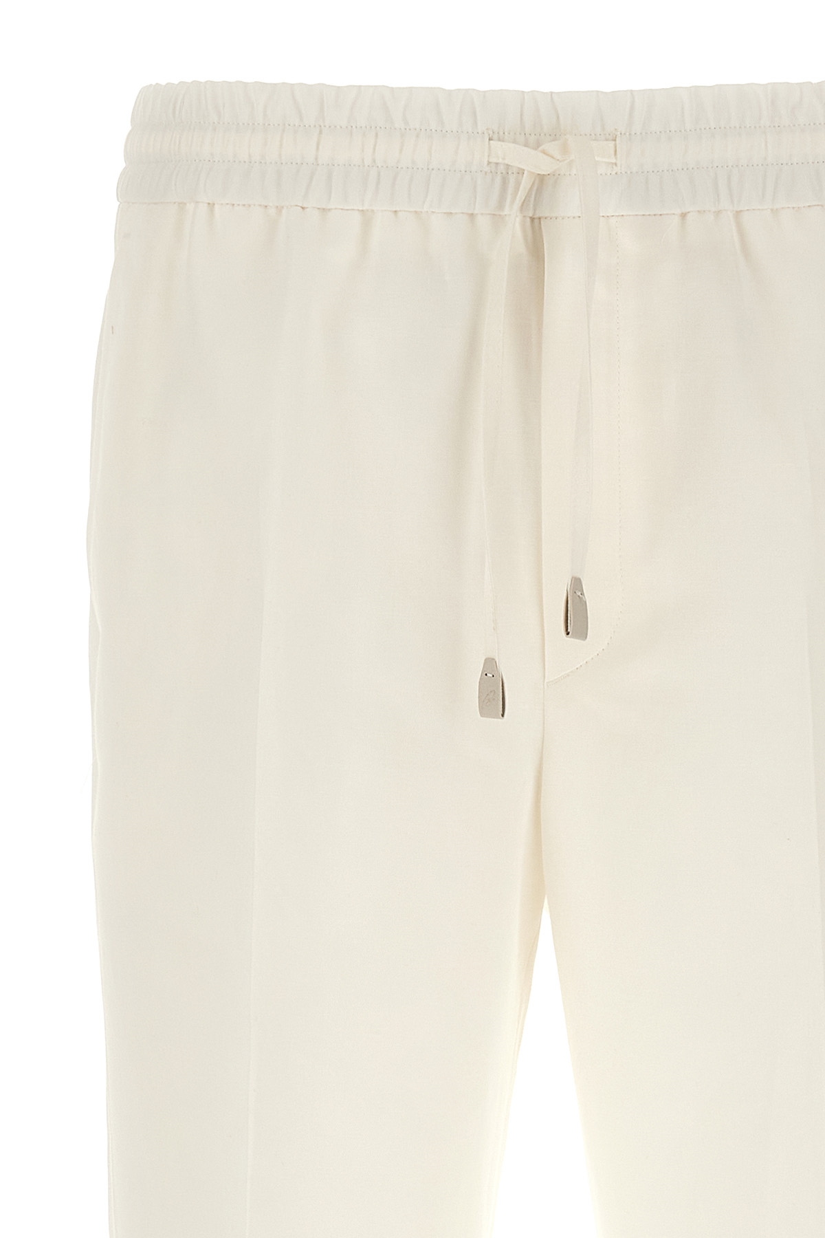 'Asolo' pants in linen and cotton blend, adjustable drawstring elastic waistband, pockets, straight leg, stretched pleat.