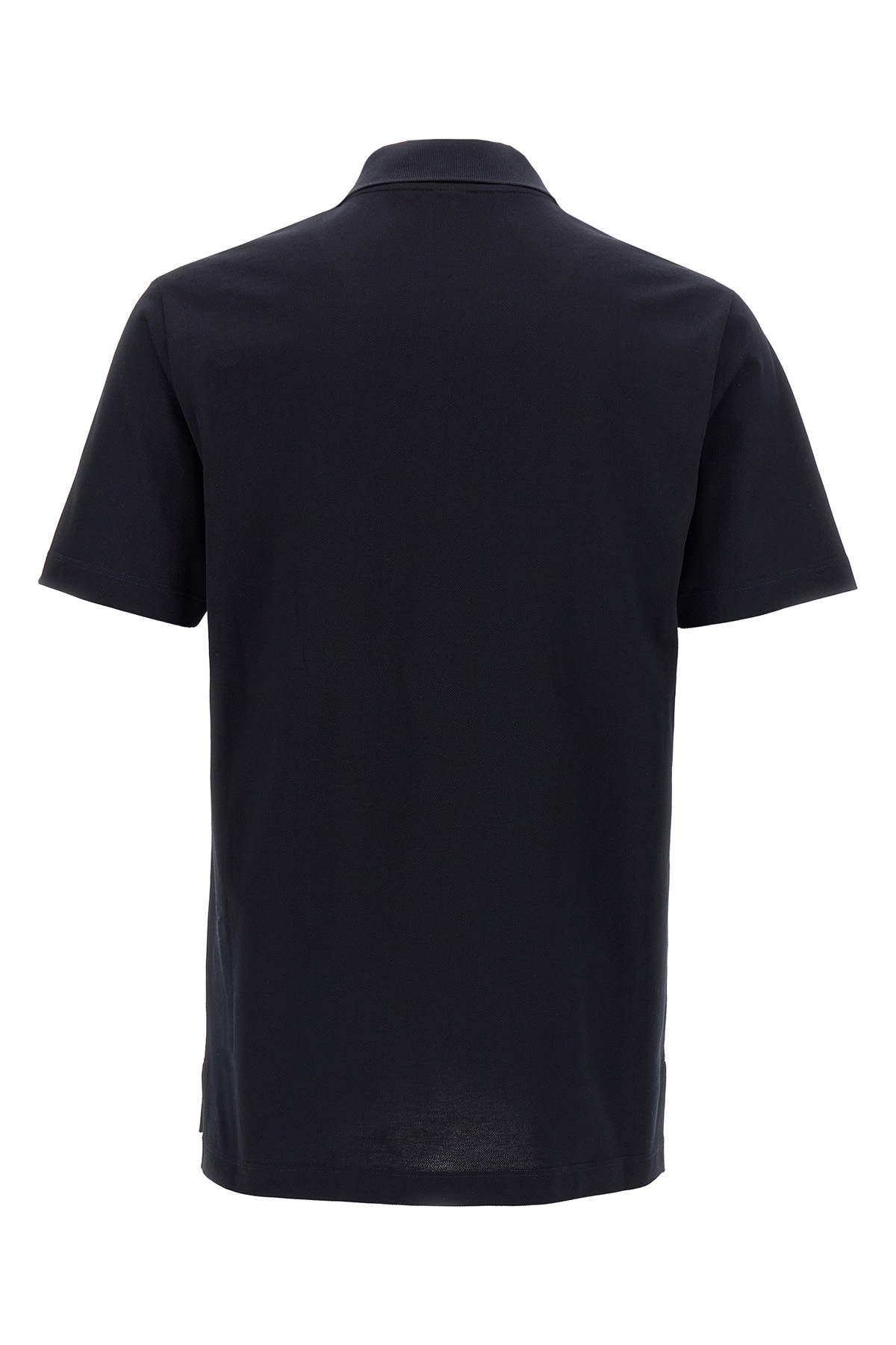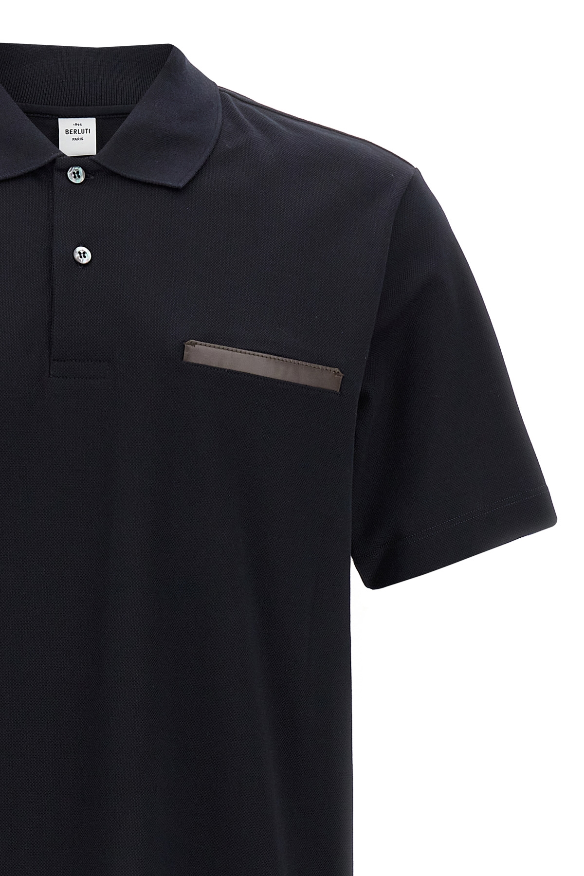 Cotton pique polo shirt, pocket with 'Leather Tab' detail, collar and buttons, short sleeves.