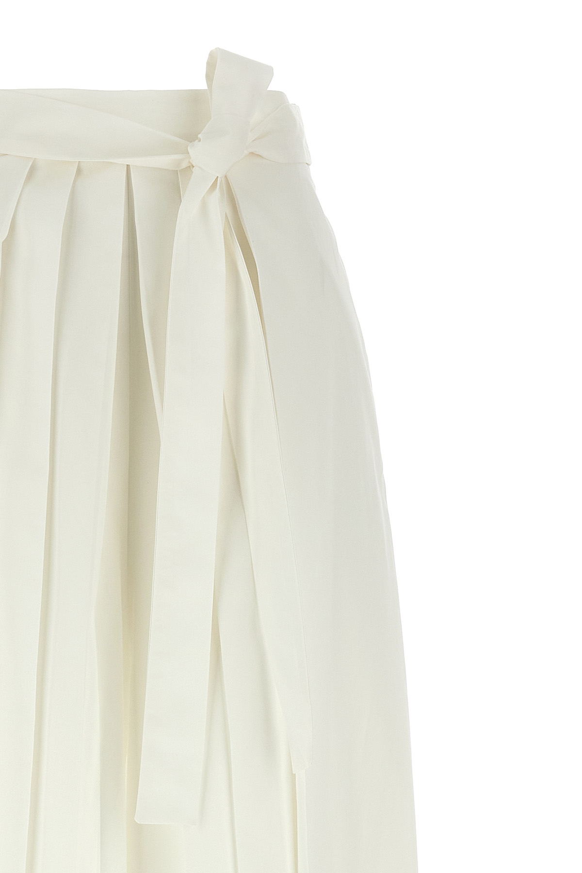 Cotton trousers, wide fit, front stretched pleat, side zip and hook closure, knotted belt at the waist.