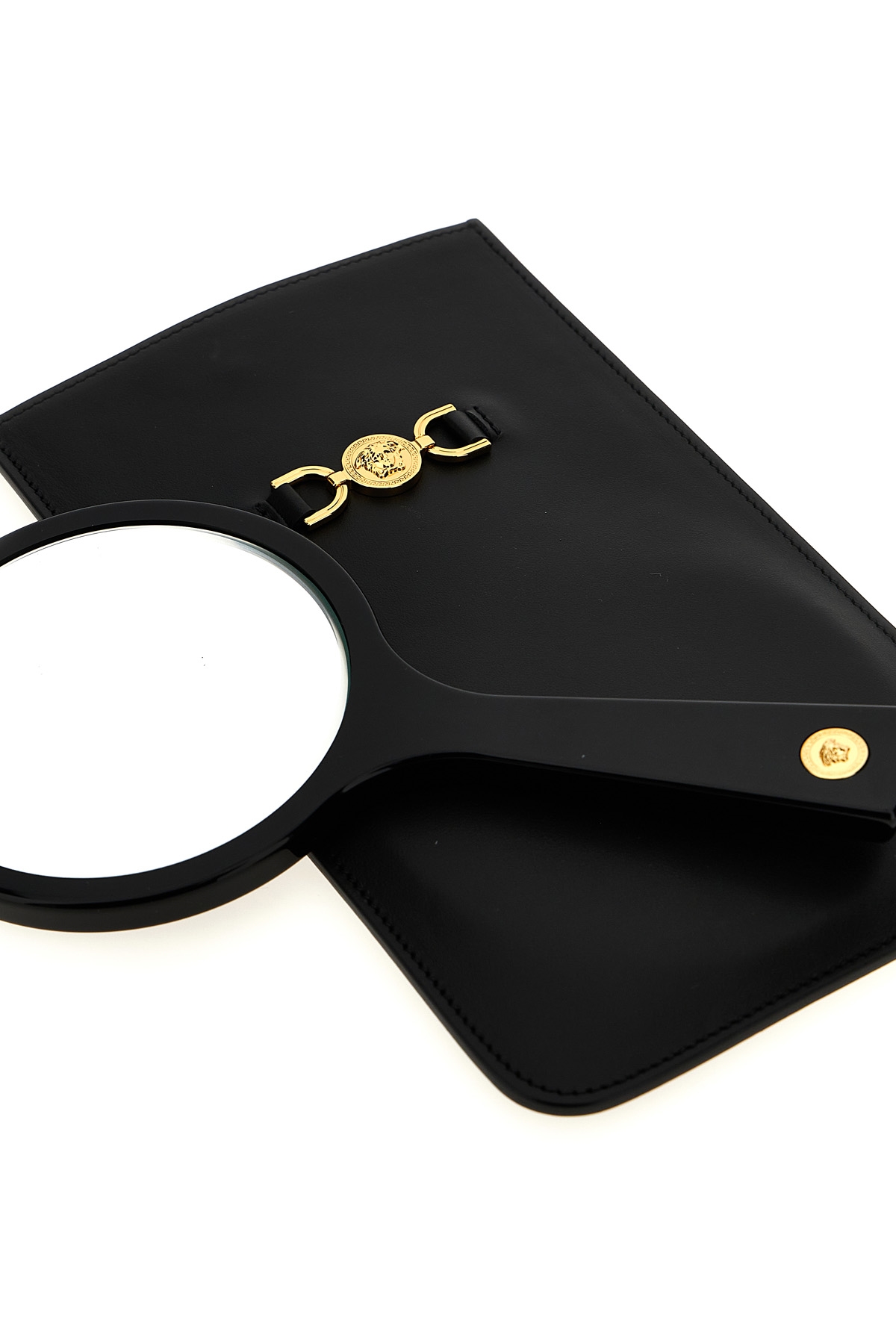 'Medusa' handbag mirror with leather case with metal logo detail.