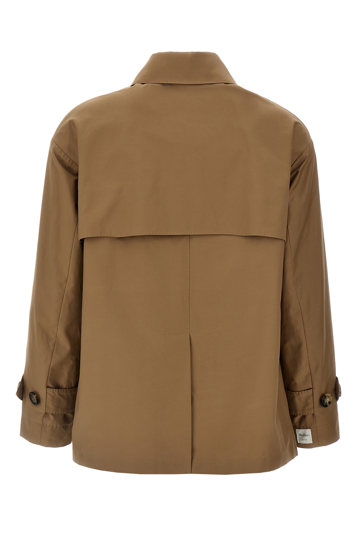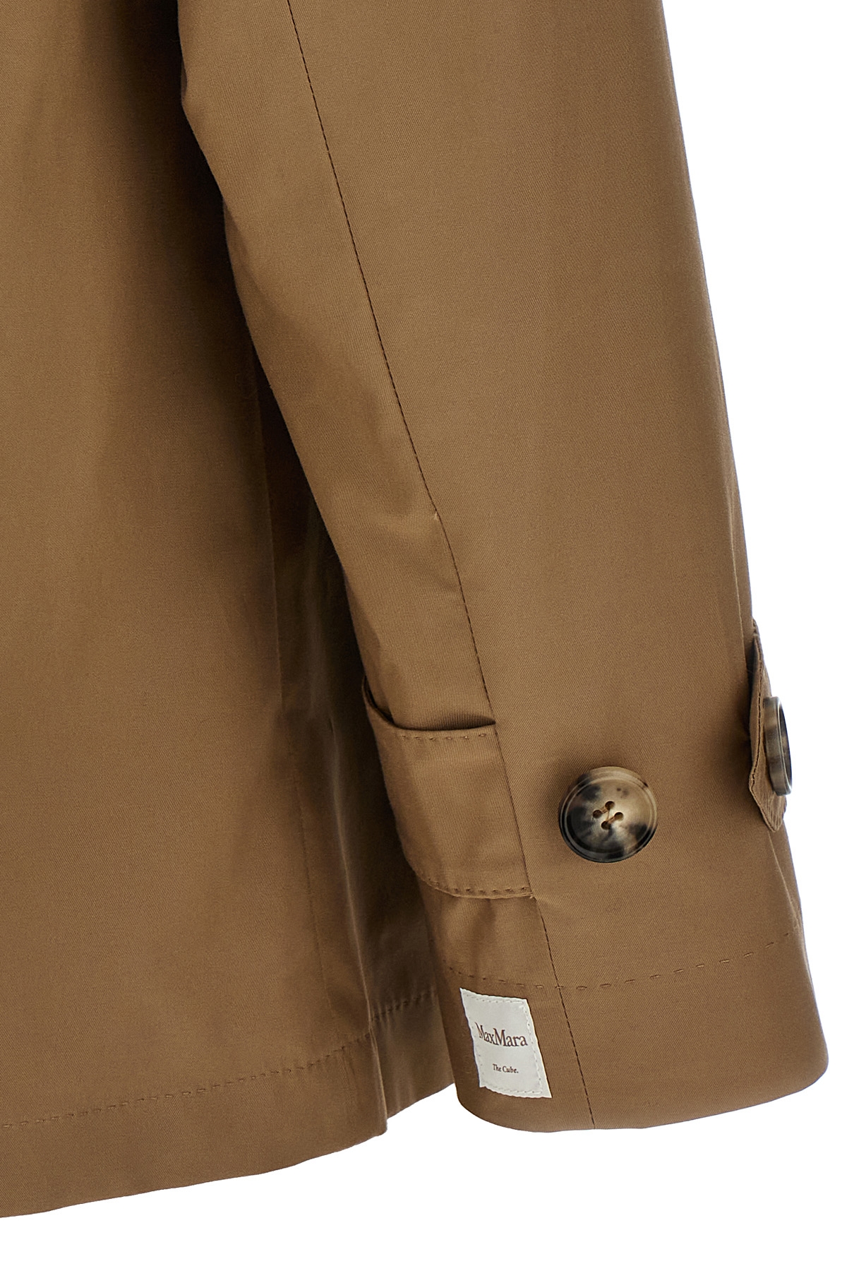 'Zeno' short waterproof fabric trench coat with double-breasted button closure, long sleeves with cuffs and adjustable straps.