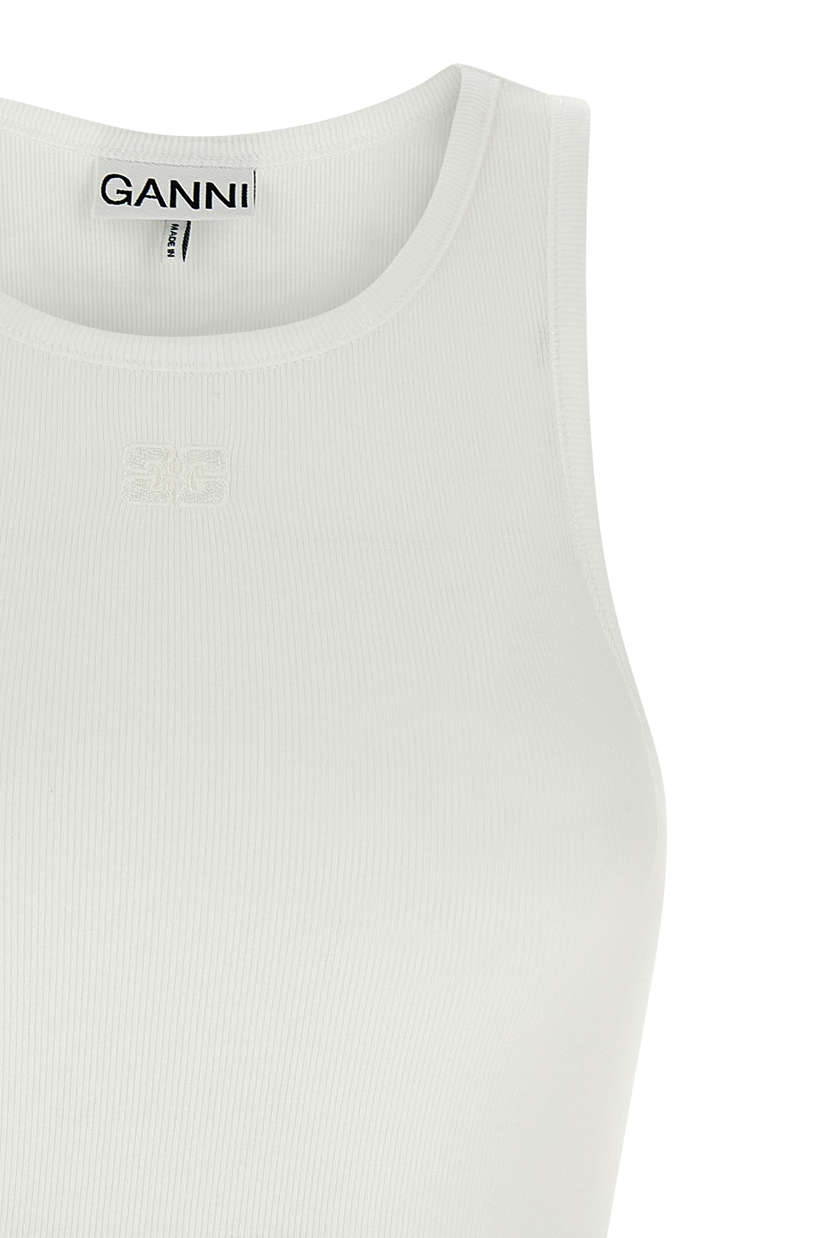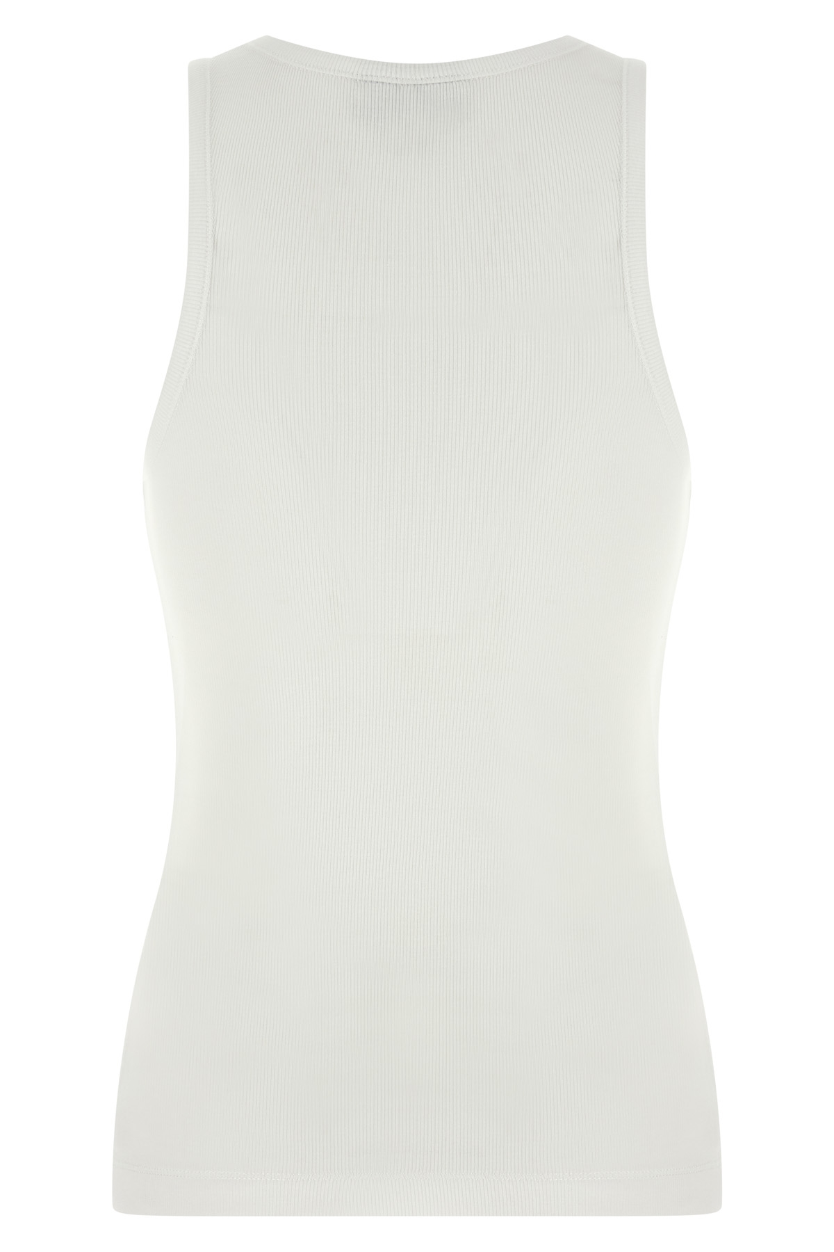 Ribbed cotton top, stretch, front logo patch, crew neck, sleeveless.