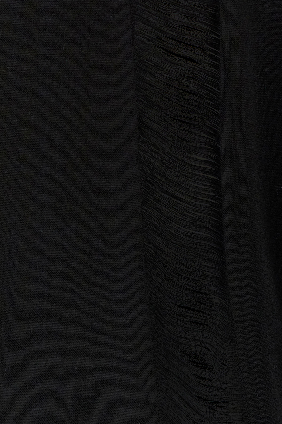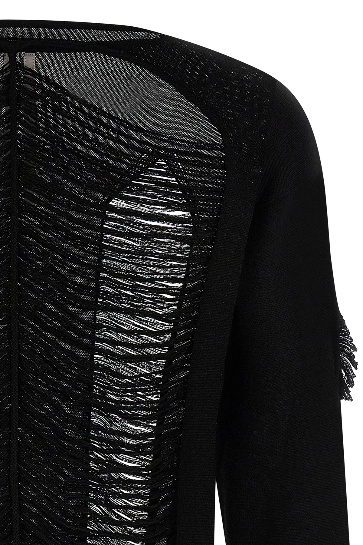 'LS Top' wool sweater with fraying and cut-out details on the front and back, boat neck, long sleeves, raw cut hem.