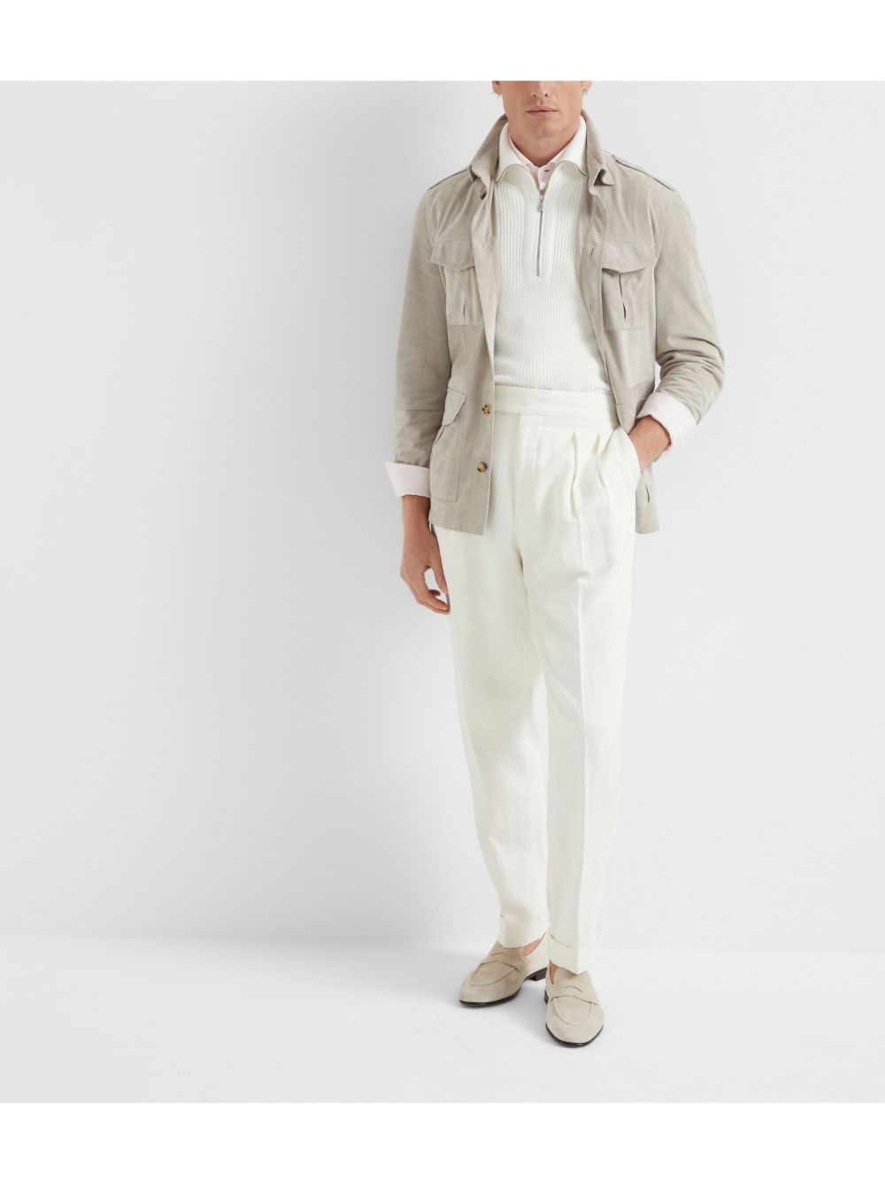 beige front button fastening four front flap pockets buttoned cuffs unlined
