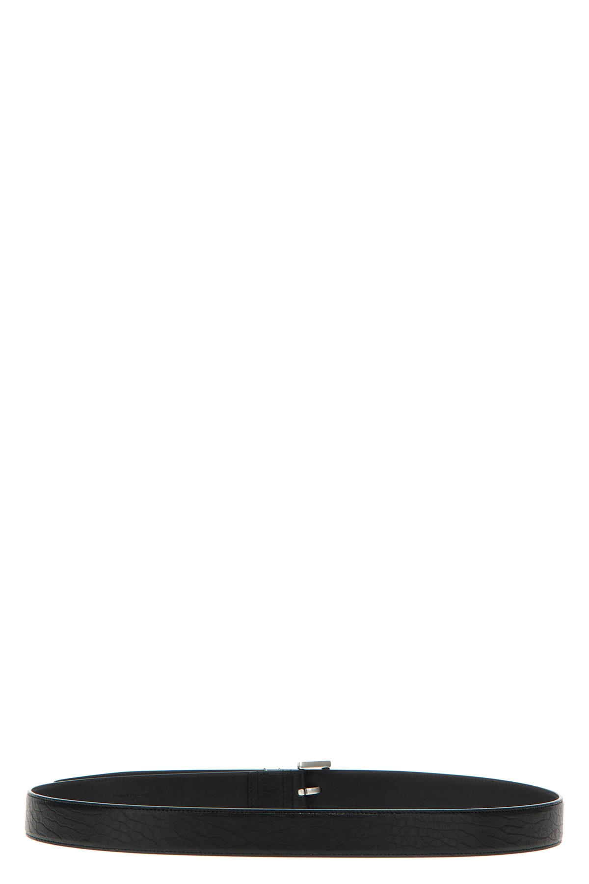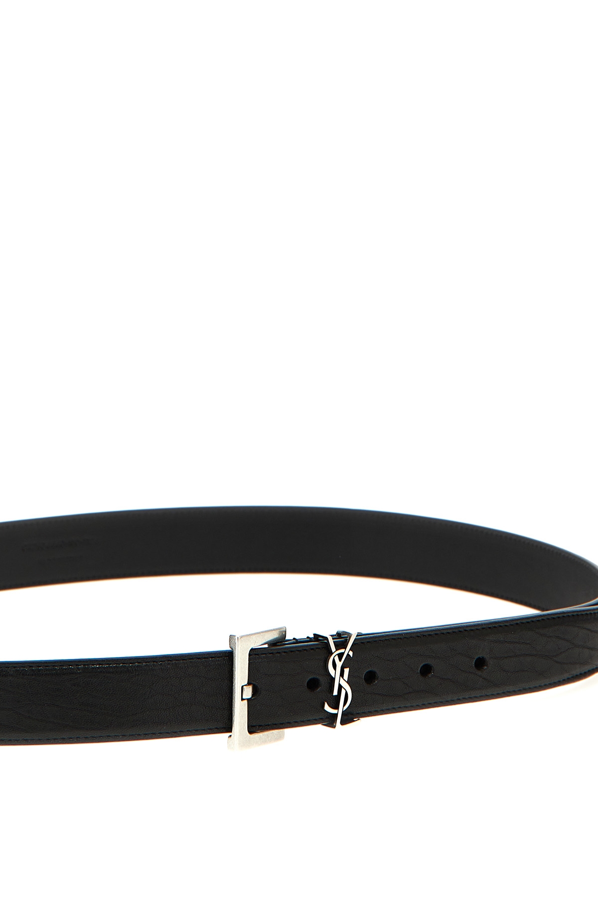 Leather belt with adjustable square buckle and silver metal 'Cassandre' loop.