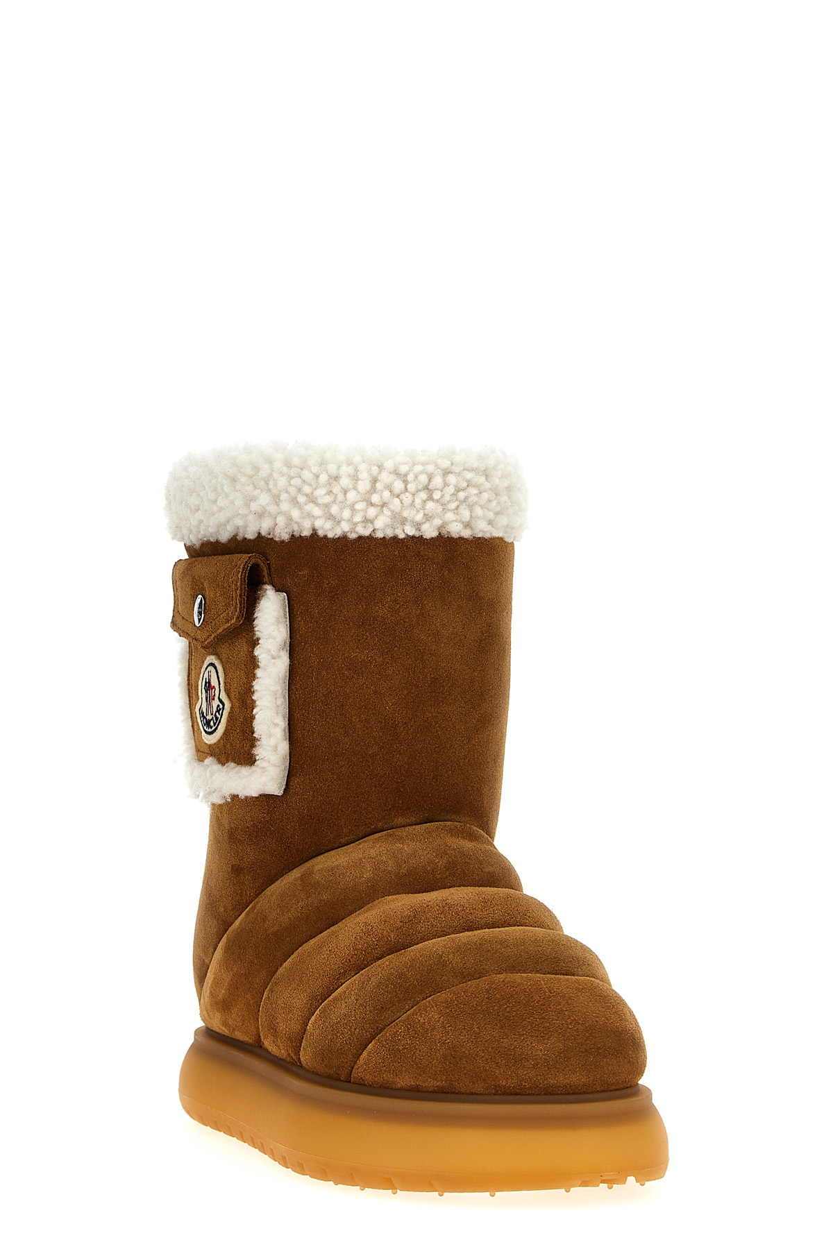 'Gaia Pocket Mid' waterproof nylon laque boot, feather padding, side pocket detail, drawstring closure, rubber sole.