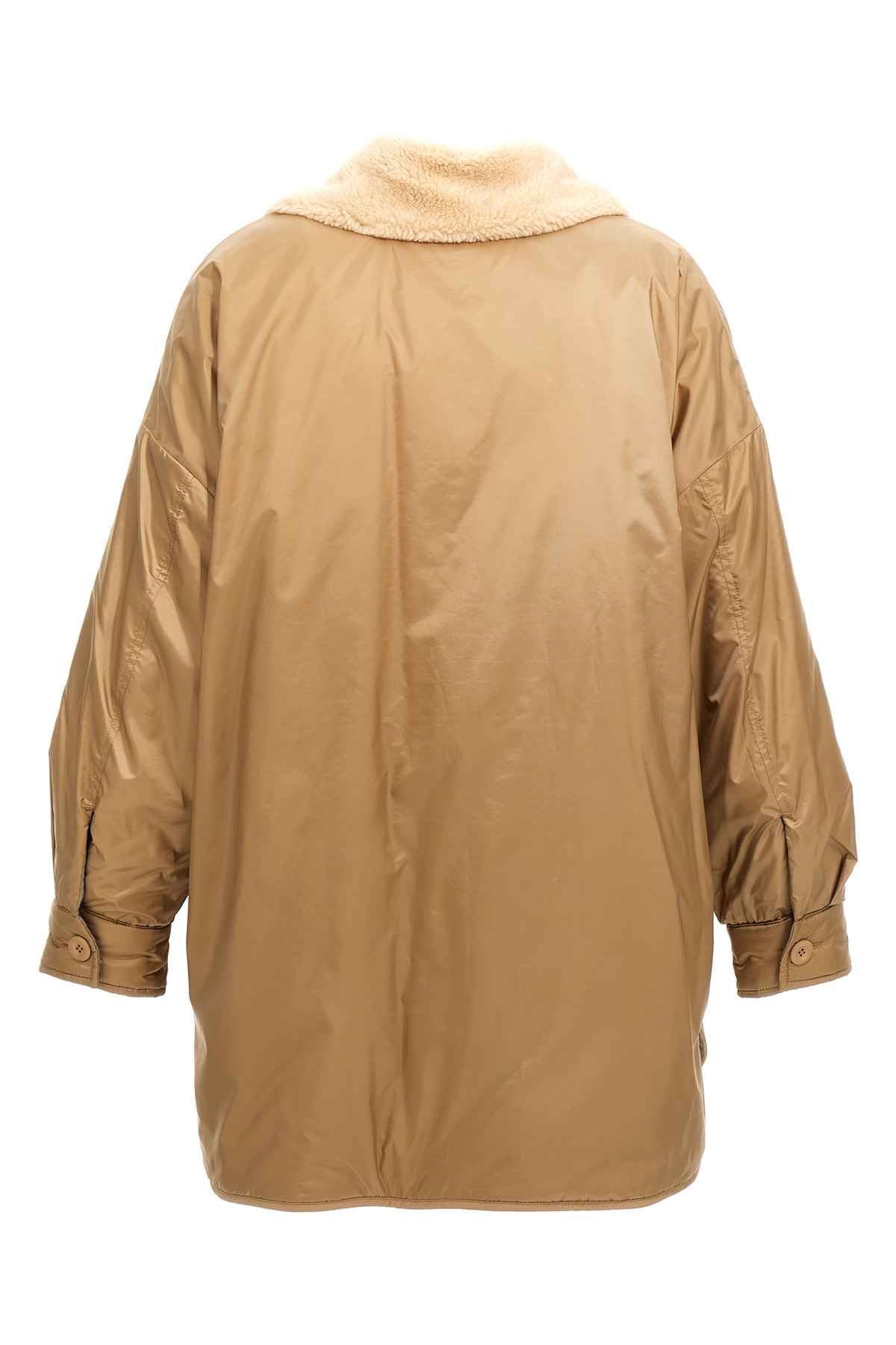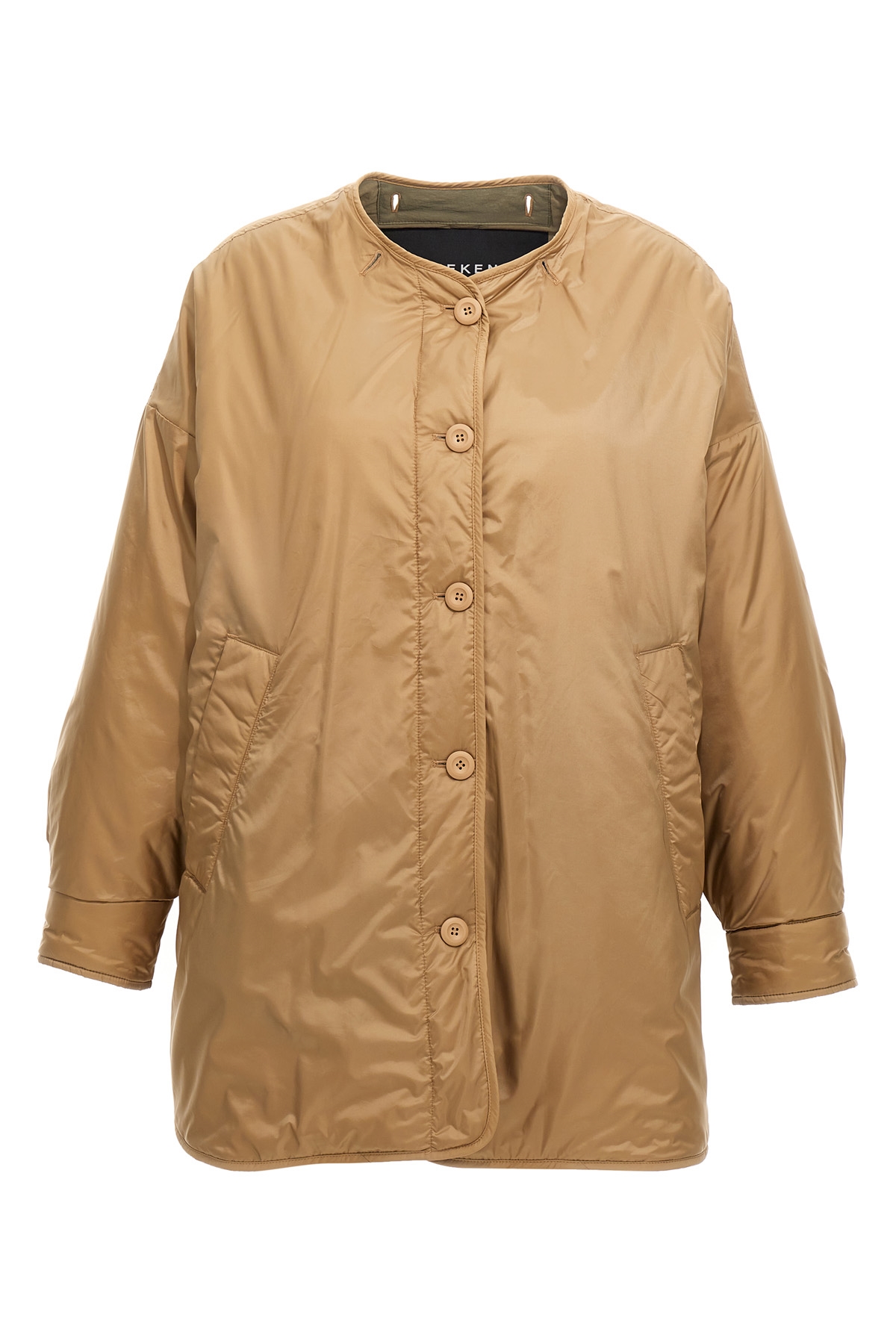 'Drava' reversible waterproof technical canvas down jacket, Luxepad Ultra Fine Insulating Technology Camel-Silk Blend Edition padding, quilted lining, removable wool collar, pockets, long sleeves, button closure.