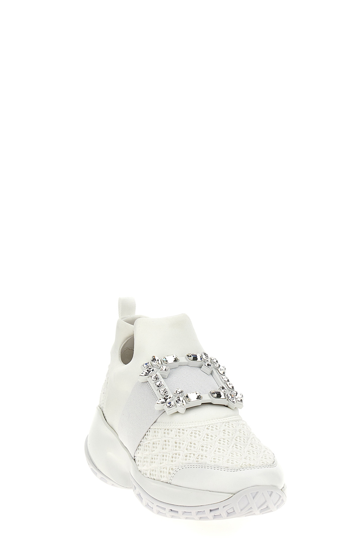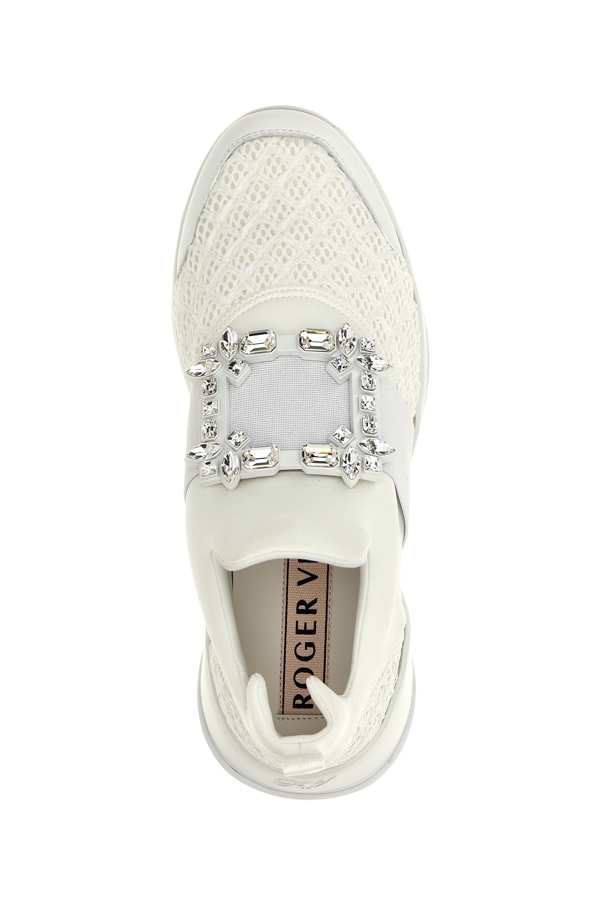 'Viv' Run sneakers in quilted mesh and scuba-effect fabric, leather toe, slip on model with jewel buckle on the front, rubber sole.