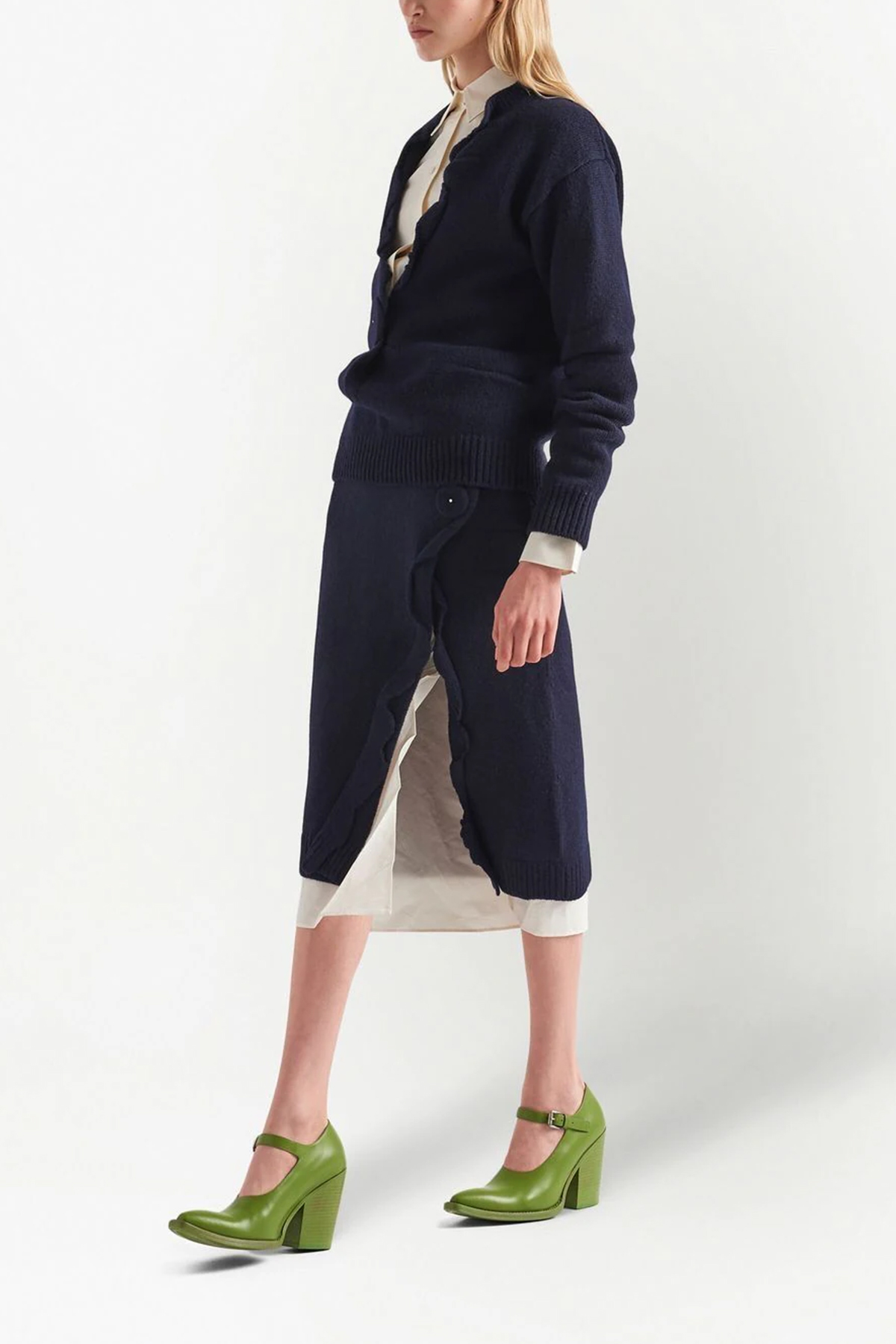 Wool and cashmere skirt with gathered details at the sides, ribbed hemline and a maxi snap button closure.