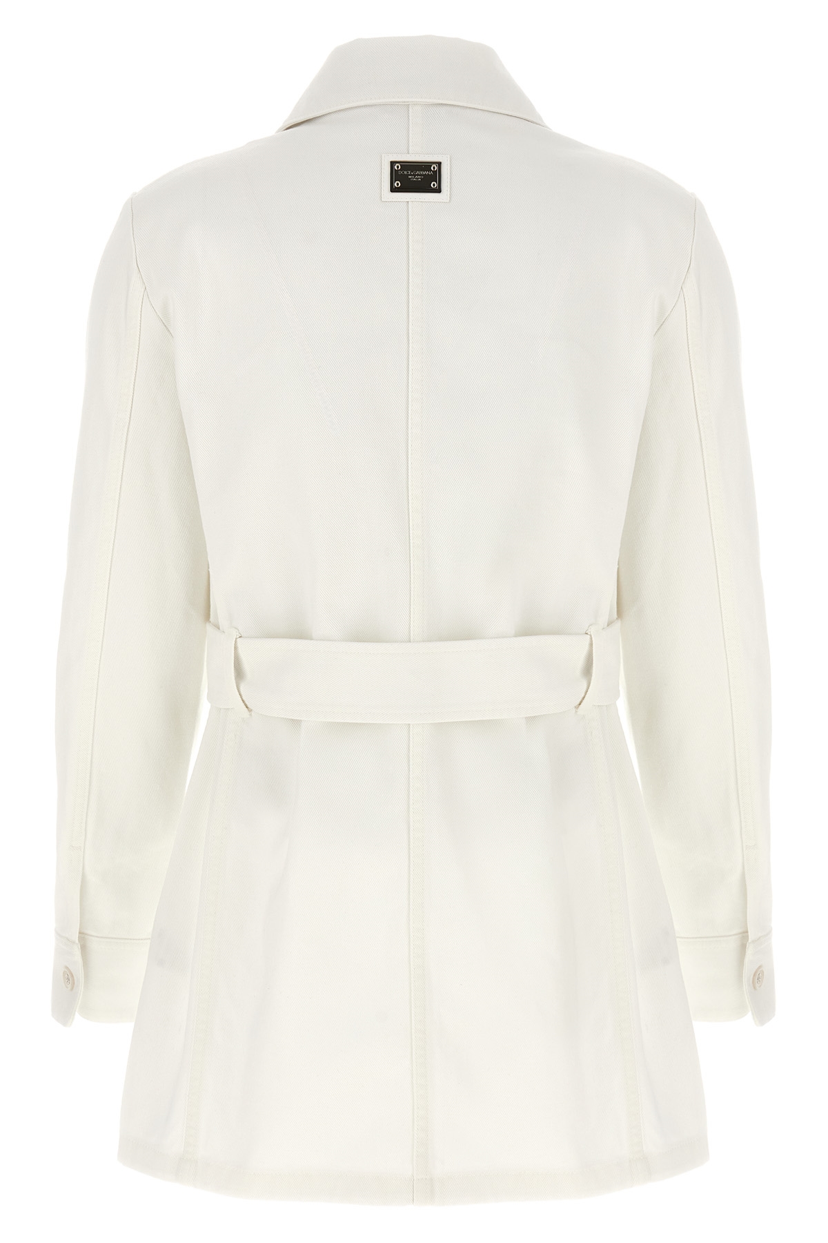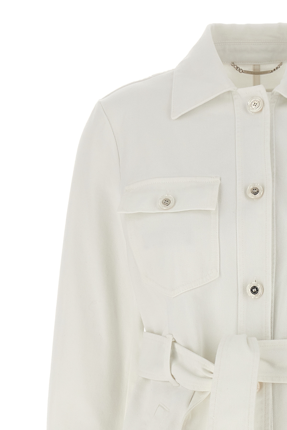 'Capri' cotton denim jacket with belt at the waist, pockets, button closure, long cuffed sleeves.