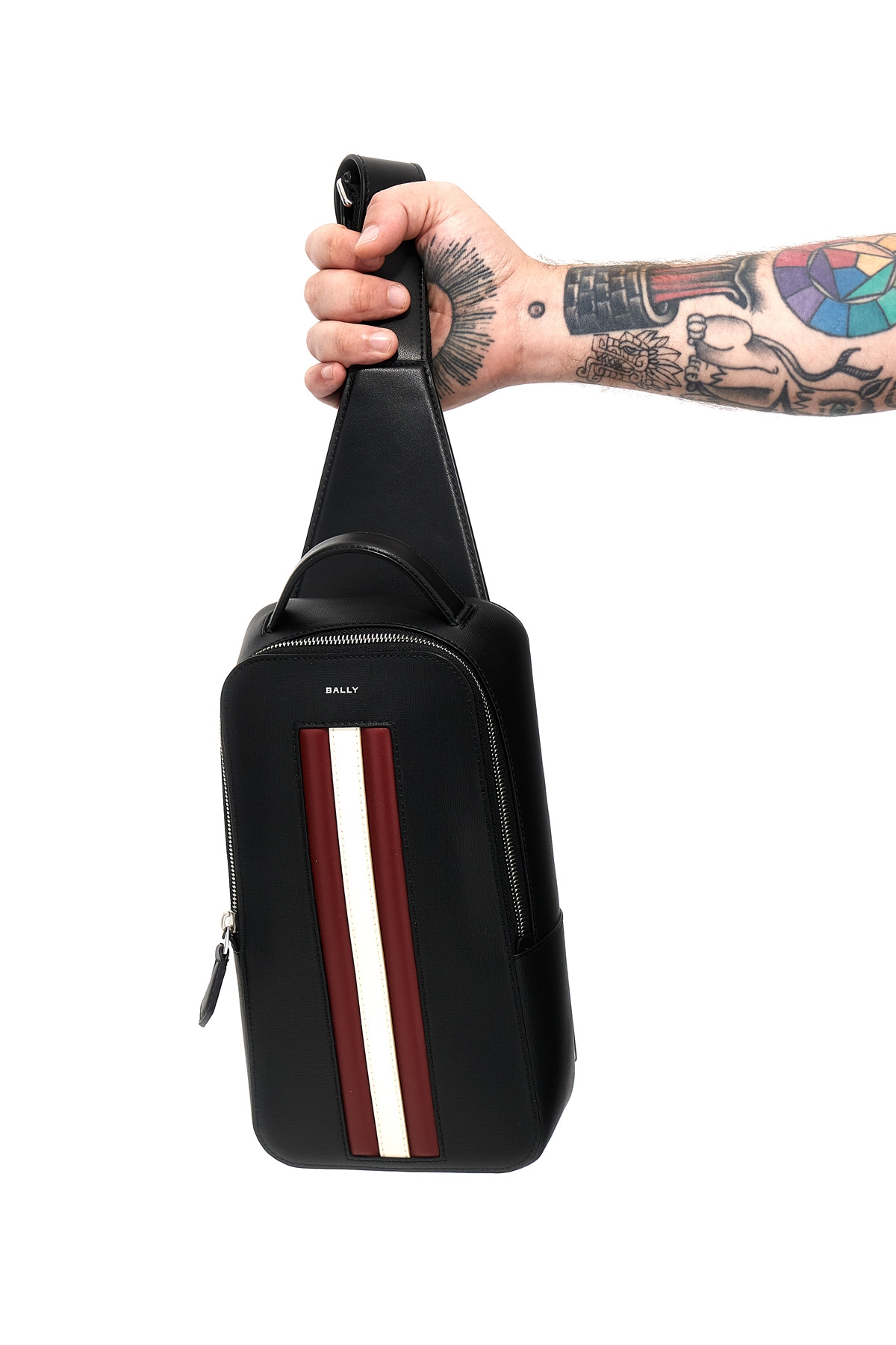 'Mythos Sling' leather backpack, one-shoulder design with adjustable shoulder strap and zip closure.