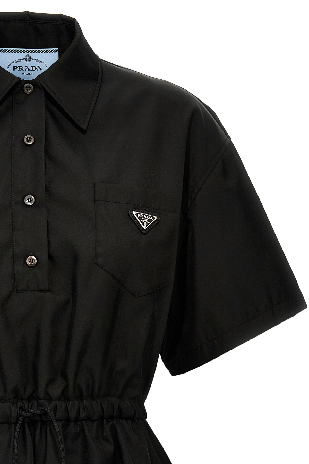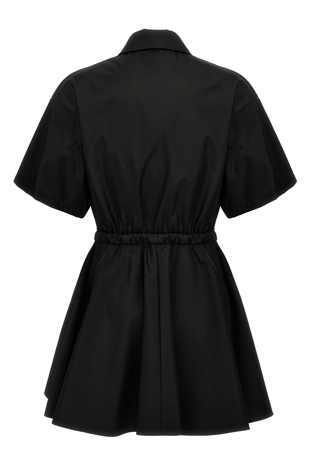Re-Nylon mini dress, chemisier model, pocket with triangle logo in enamelled metal, elastic with adjustable drawstring at the waist, button closure, short sleeves, full skirt.