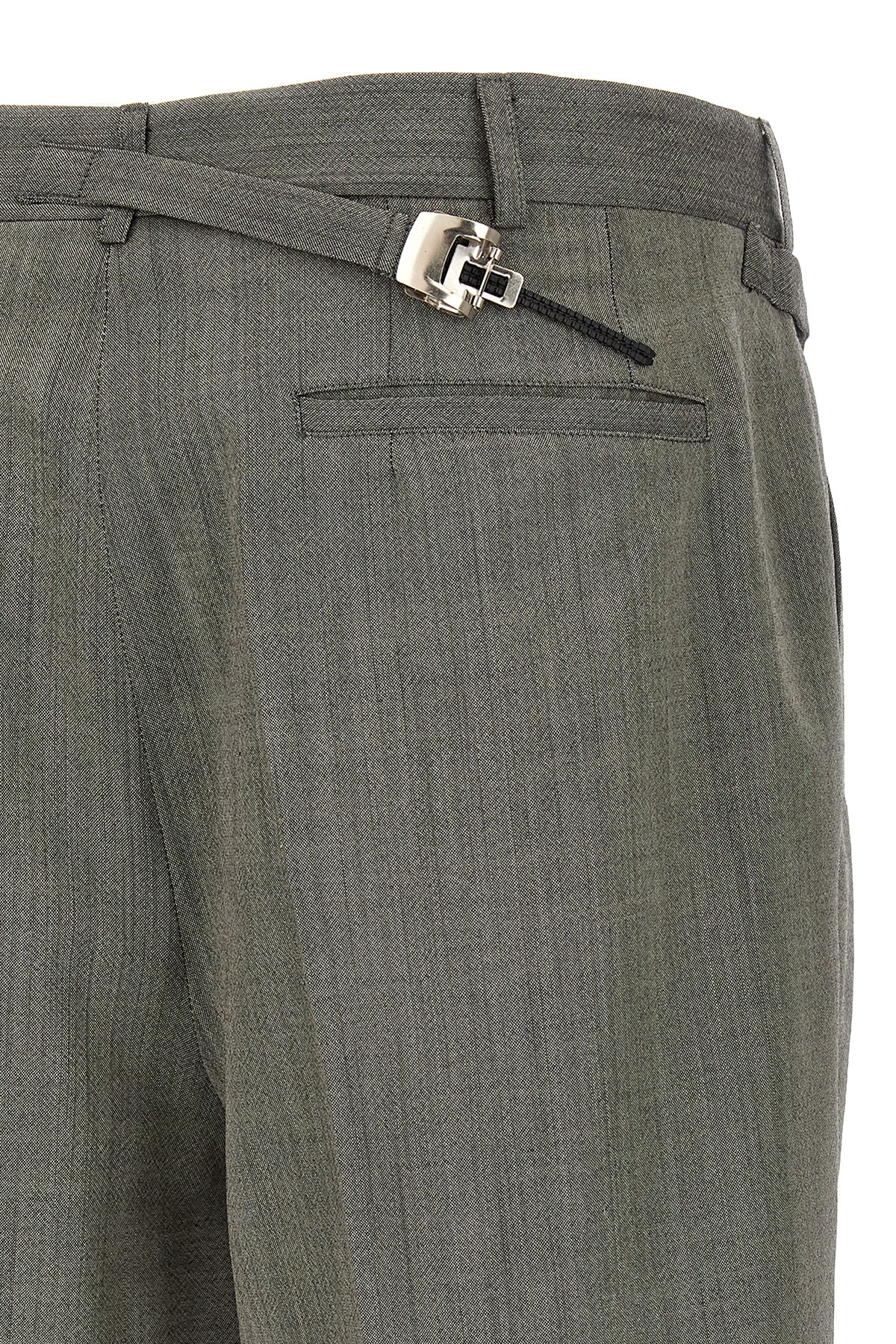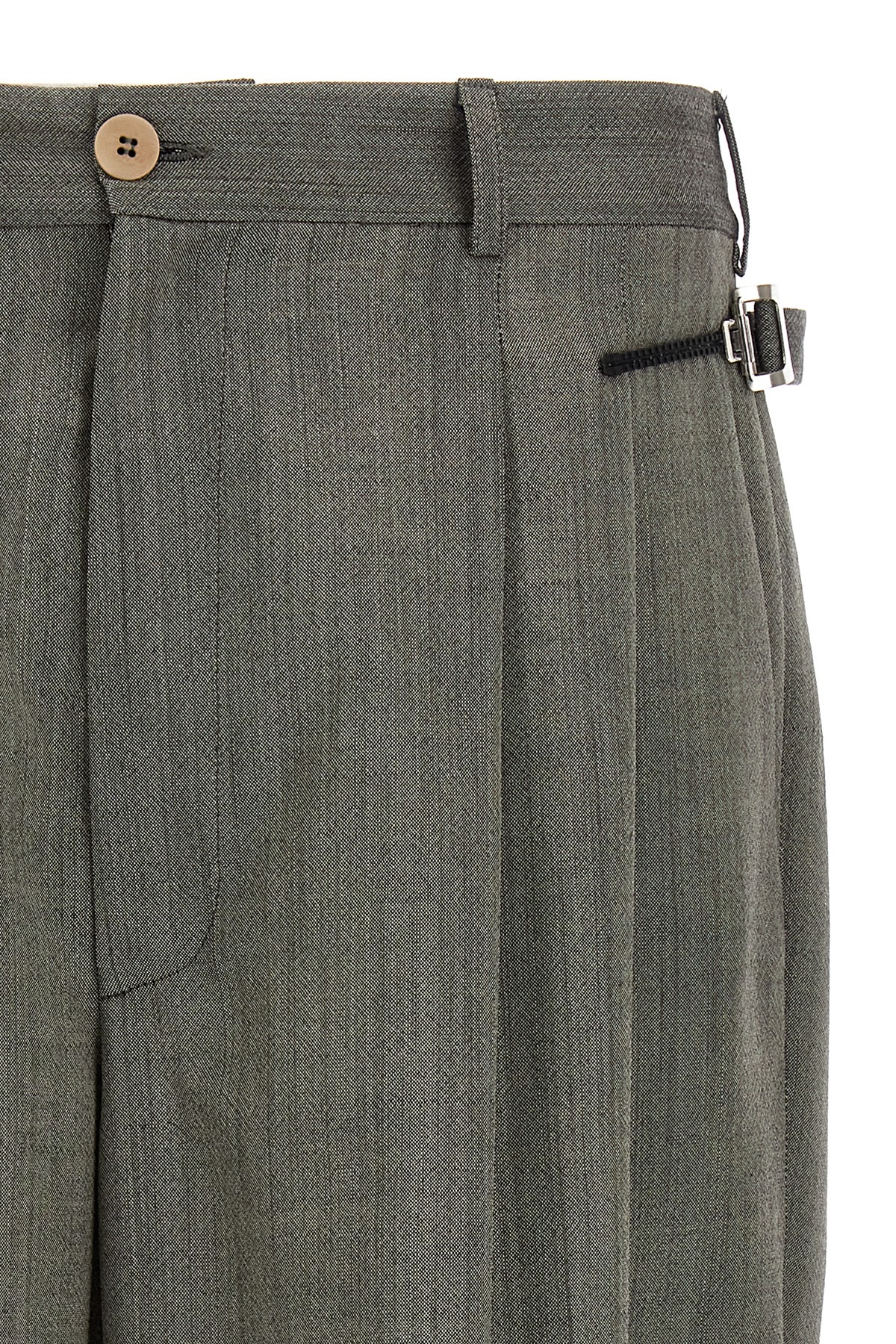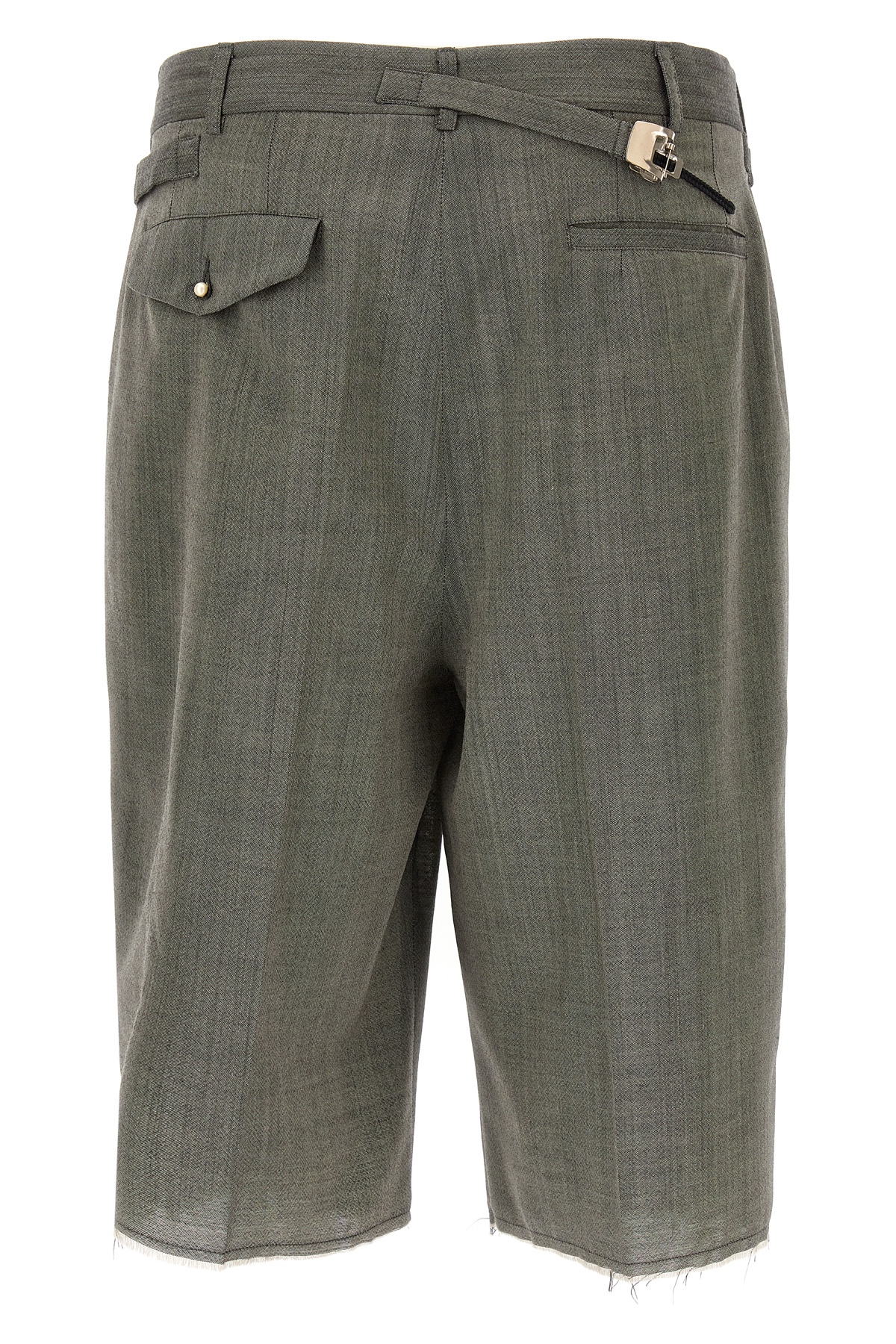 Virgin wool Regolatore bermuda shorts with zip and button closure, adjustable side strap detail, pockets, pleated leg and stretched pleat, raw cut hem.