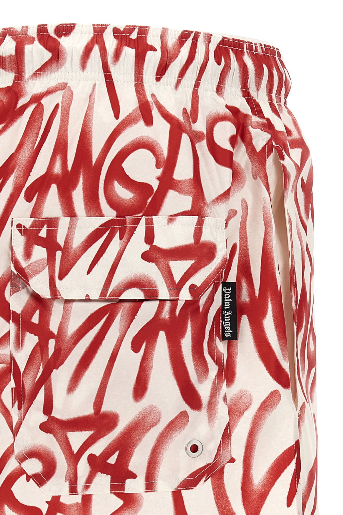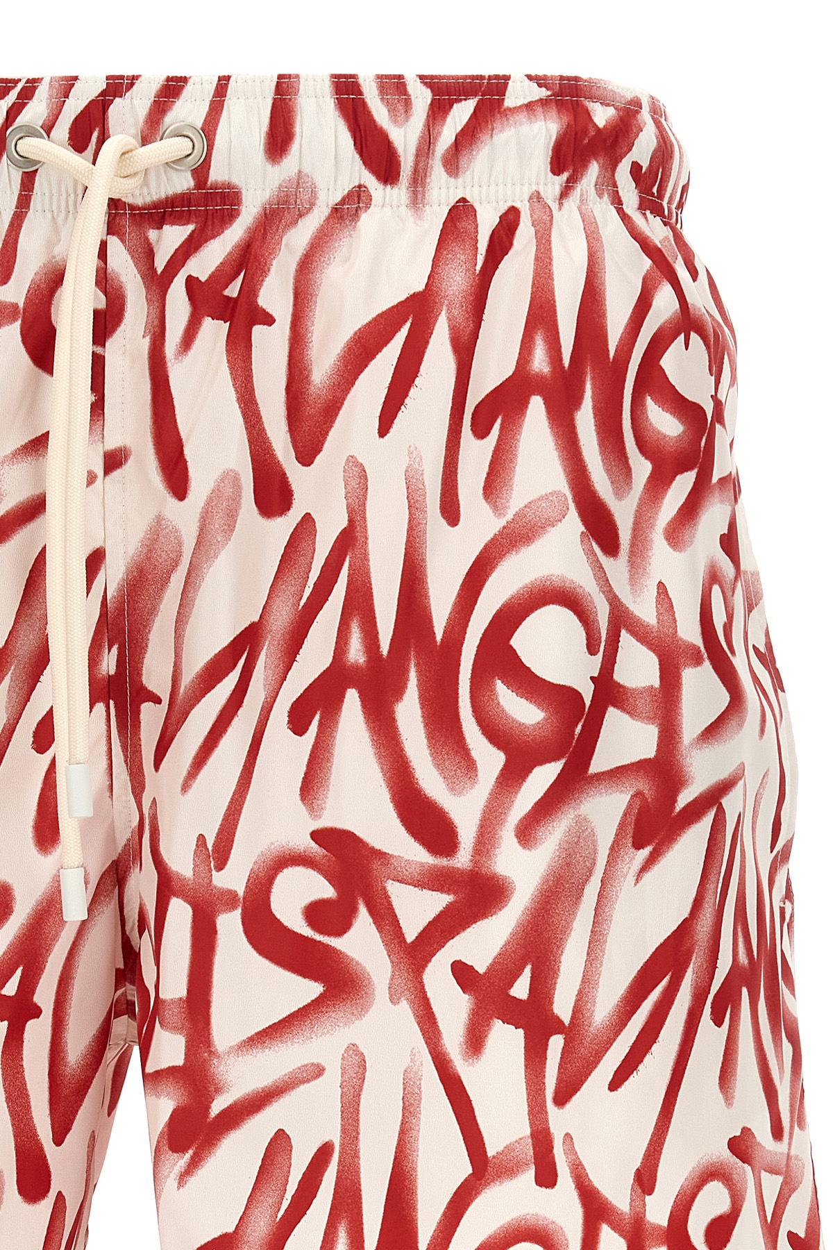 Swimsuit in all-over 'Graffiti' print technical fabric, adjustable drawstring elastic waistband, pockets, inner mesh briefs.
