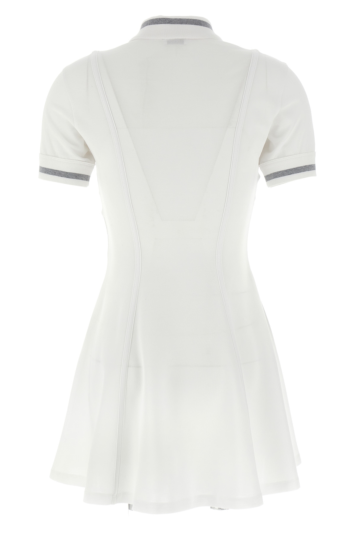 Flared cotton pique mini dress with contrast details, front logo embroidery, polo shirt style with collar and buttons, short sleeves, matching stretch fabric shorts with side patch pocket.