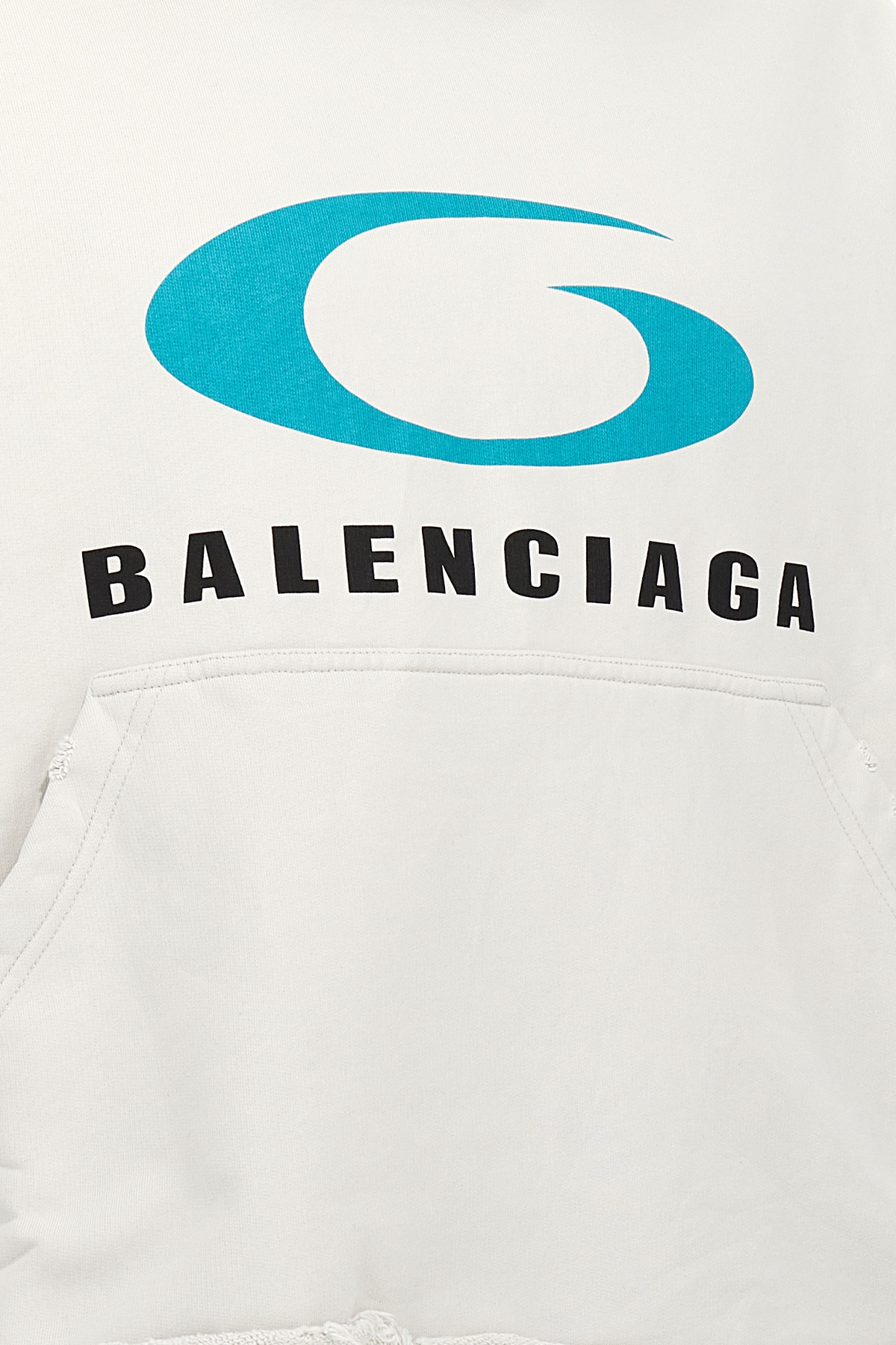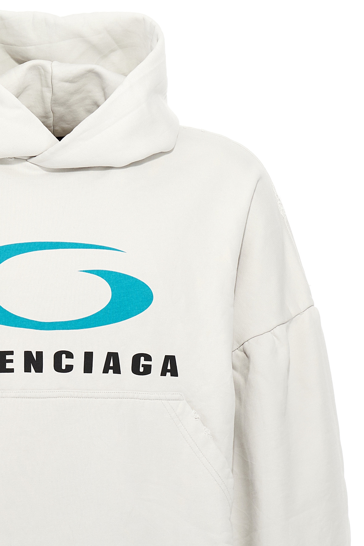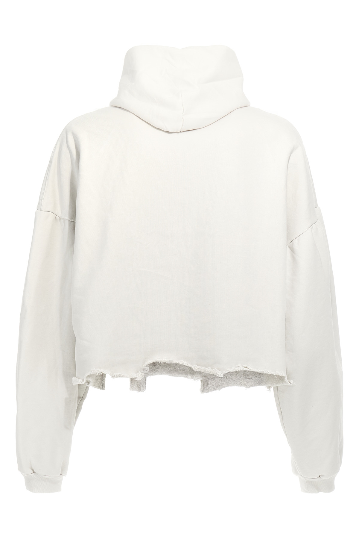 'Loop Sports Icon' cropped hoodie in wrinkled effect cotton with destroyed details, front logo print, kangaroo pocket, long cuffed sleeves.