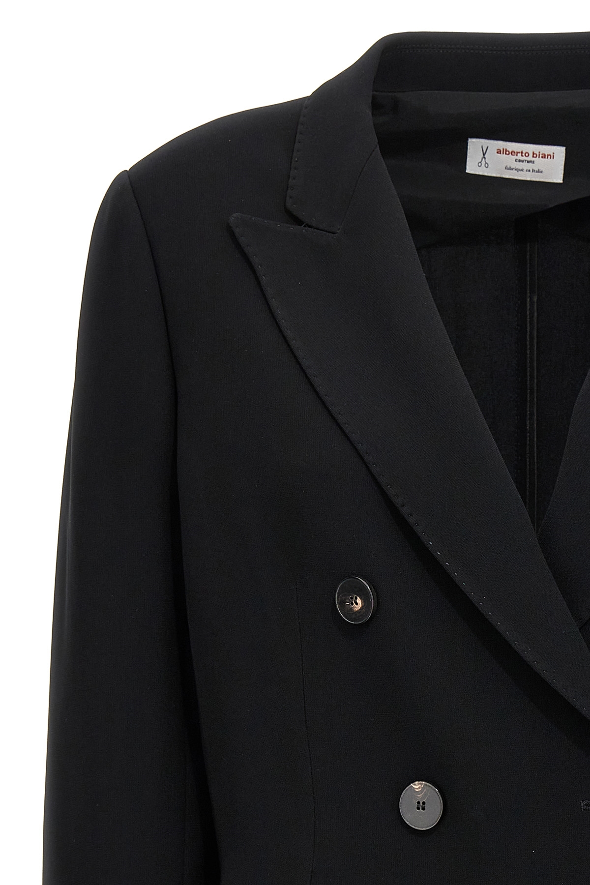 Double-breasted blazer in light and unlined cady, button closure and peak lapels.