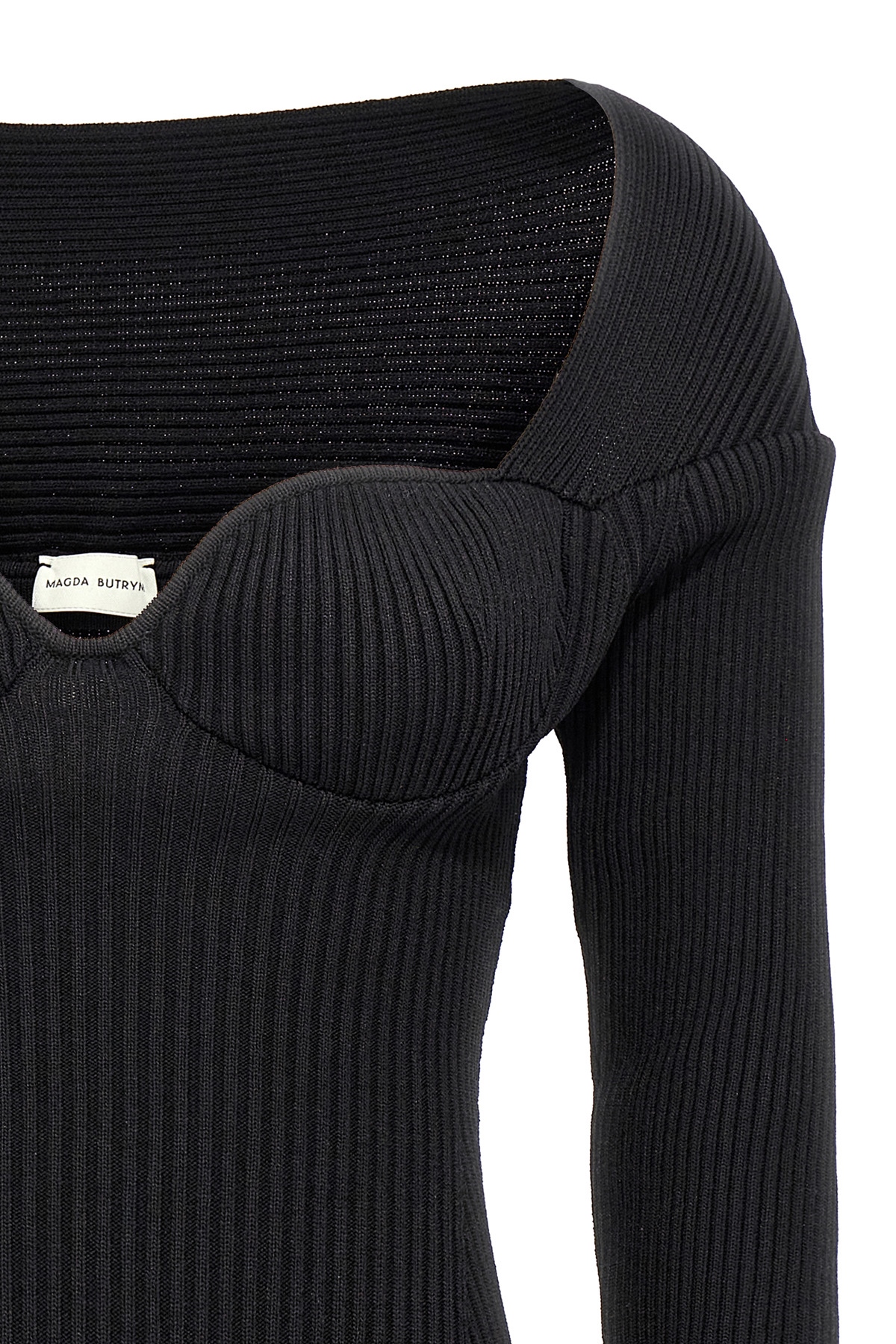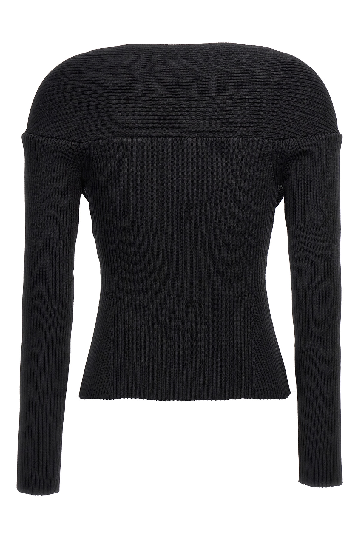 '06' ribbed viscose blend sweater with sweetheart neckline, long sleeves.