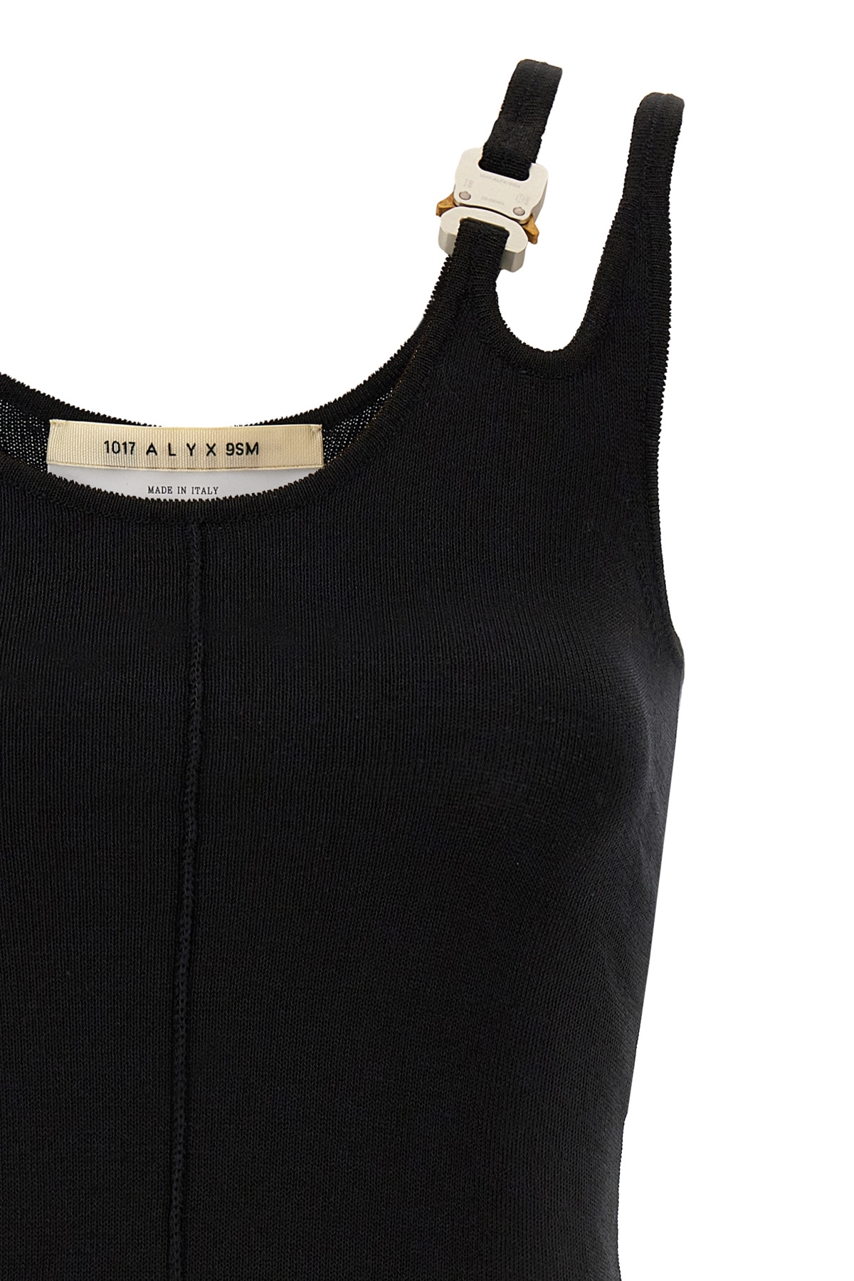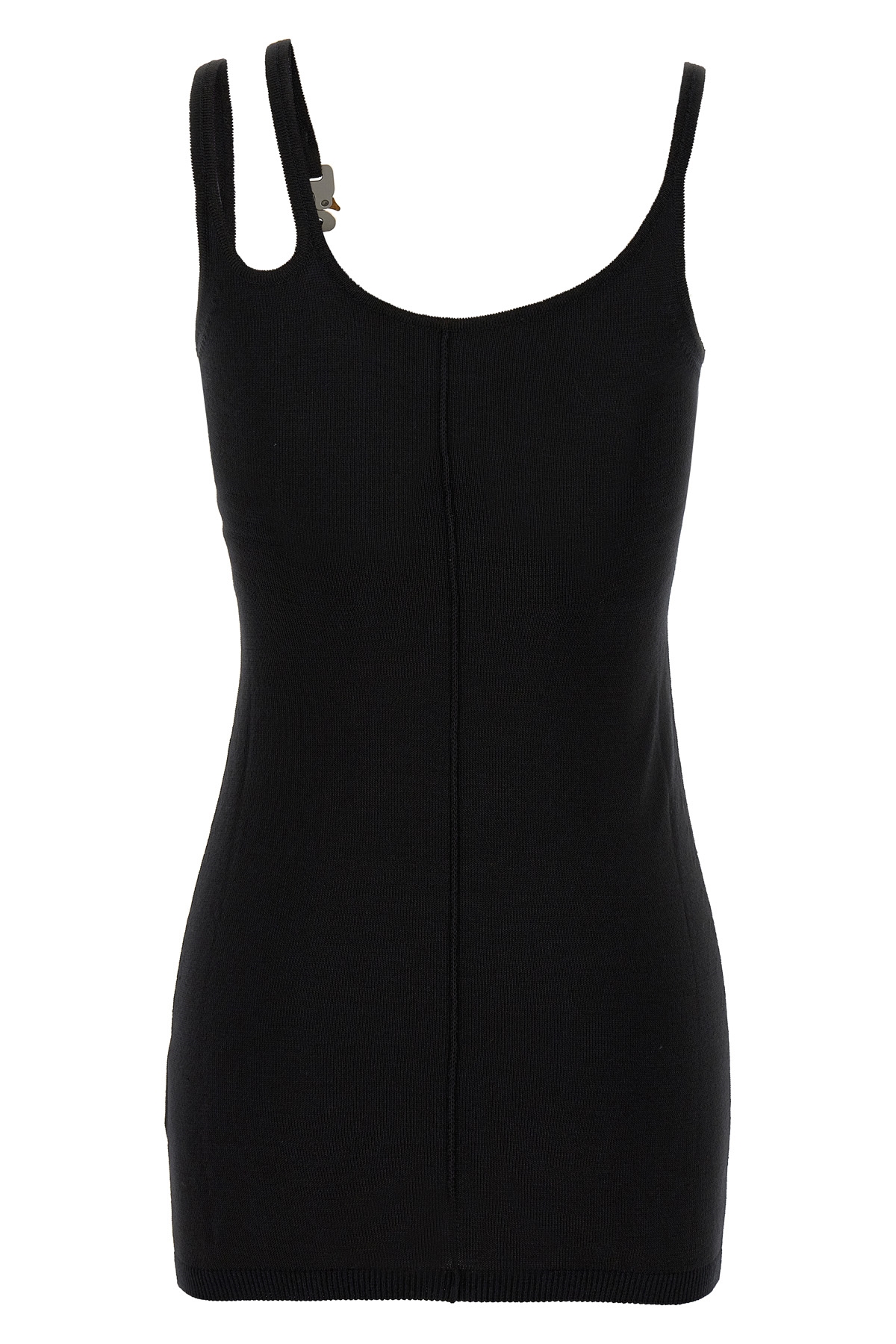 '3X Disco' viscose blend knit dress with round neckline, thin straps, mini metal buckle detail.