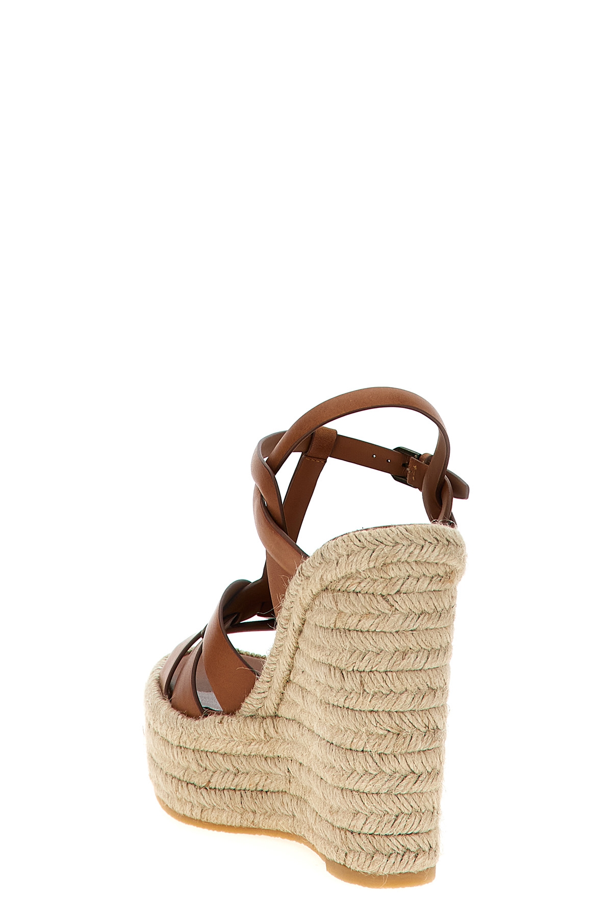 Tribute Espadrilles in leather with a jute wedge, adjustable ankle strap, rubber sole.