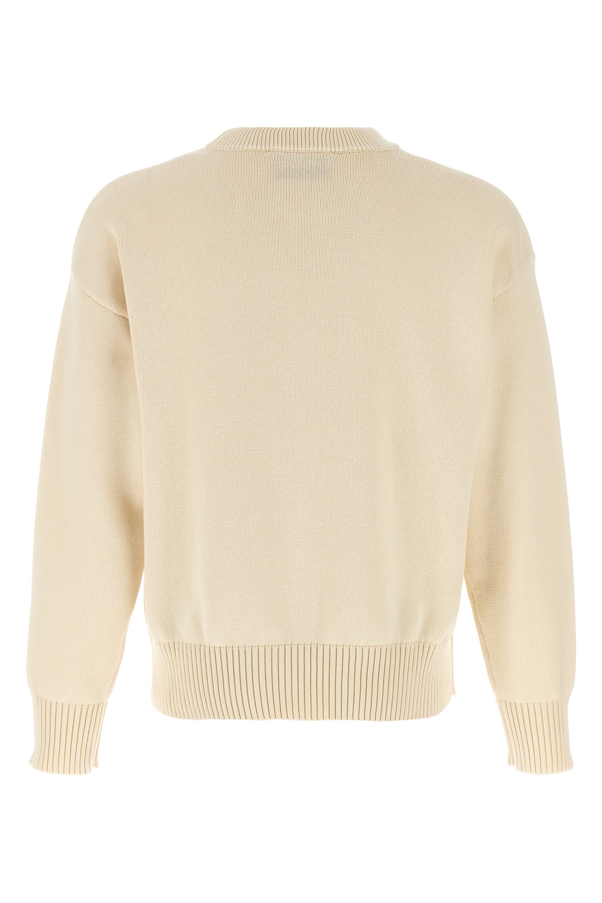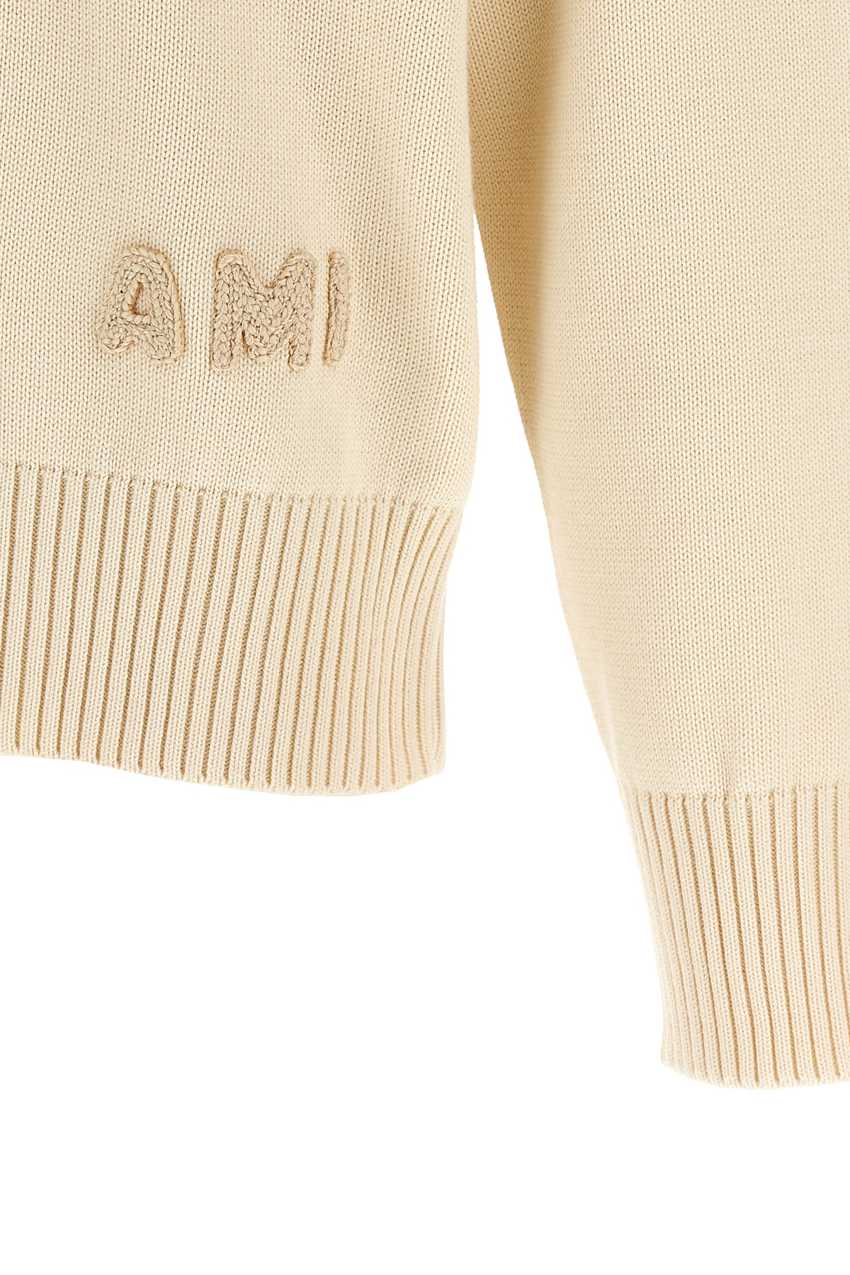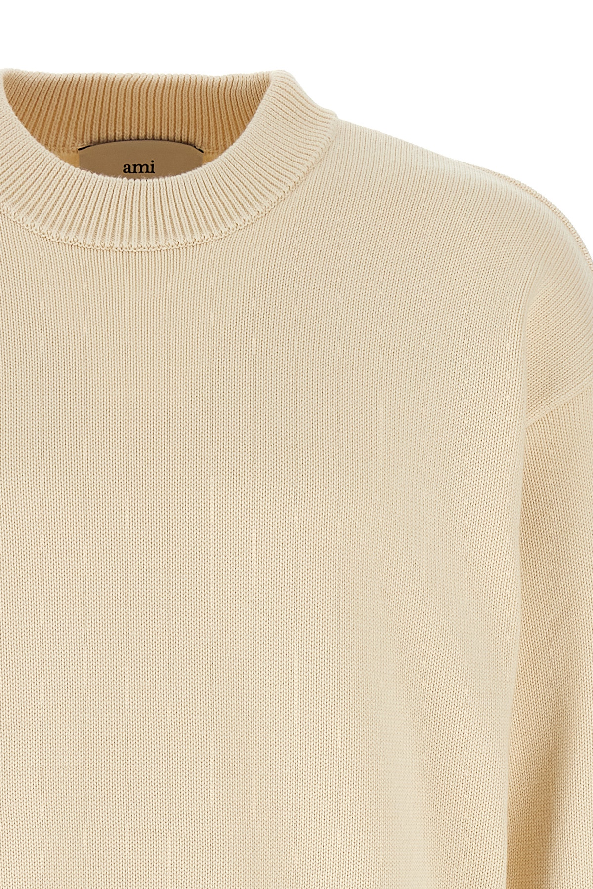 Cotton and wool blend sweater with tone-on AMI-tone embroidery on the front, crew neck, long cuffed sleeves.